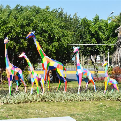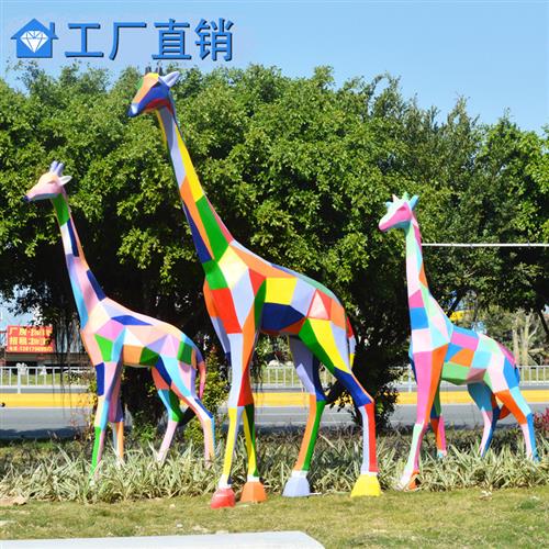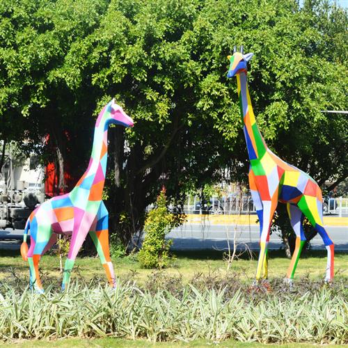 户外园林景观玻璃钢几何彩绘长颈鹿雕塑摆件广场景区大型动物美陈