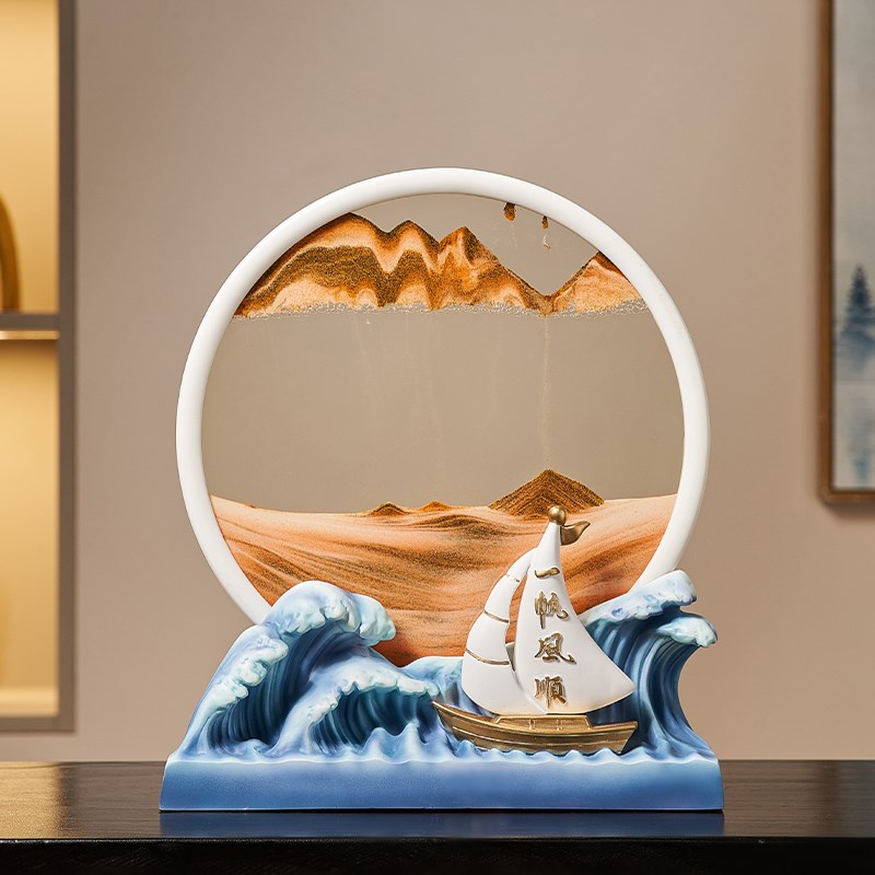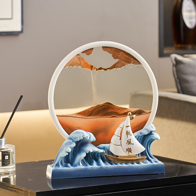 一帆风顺流沙画沙l漏摆件家居客厅玄关酒柜电视柜办公室装饰品礼