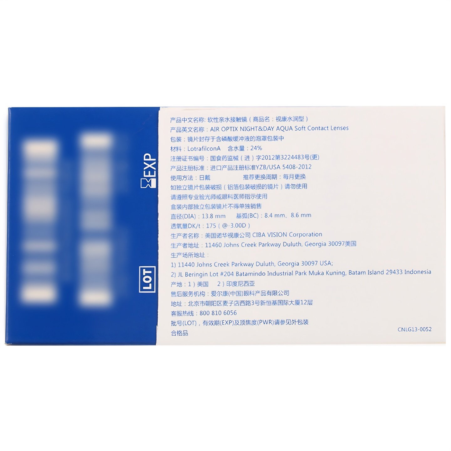 3片*2盒】爱尔康视康日夜型隐形眼镜月抛6片装硅水凝胶旗舰店正品