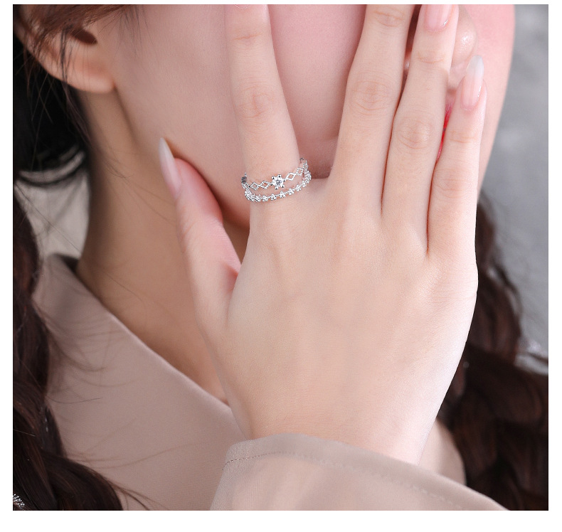 网红双层皇冠戒指女纯银个性开口食指戒2022年新款设计感生日礼物