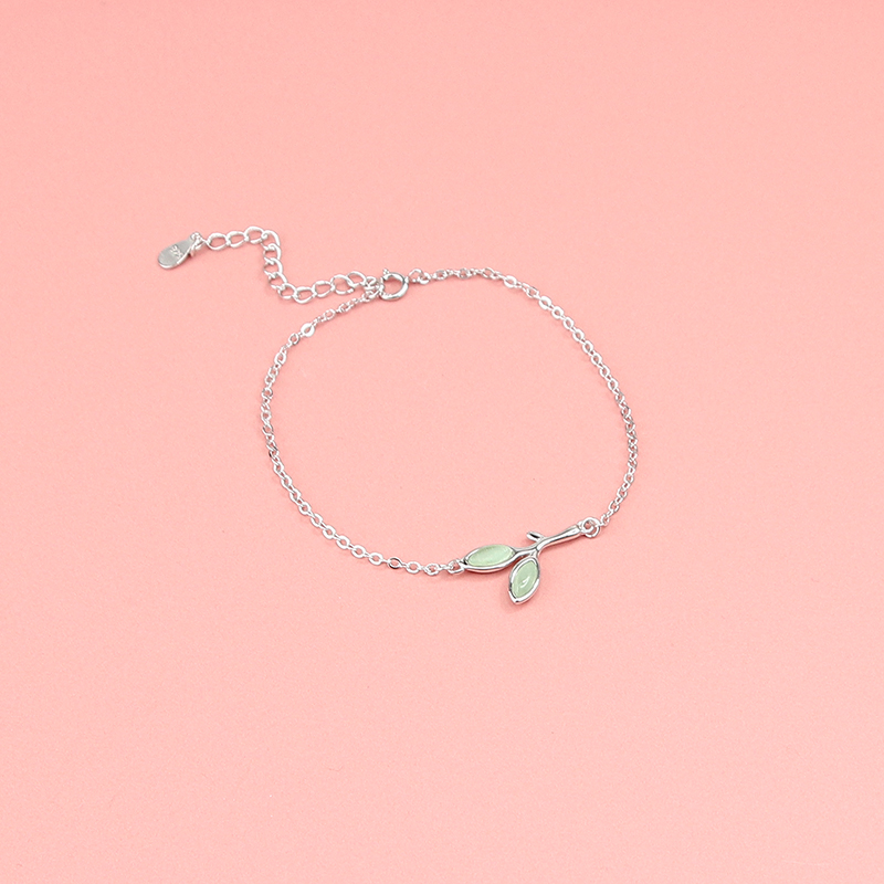 精致树叶手链女韩版ins甜美简约学生森系文艺设计感猫眼石手环