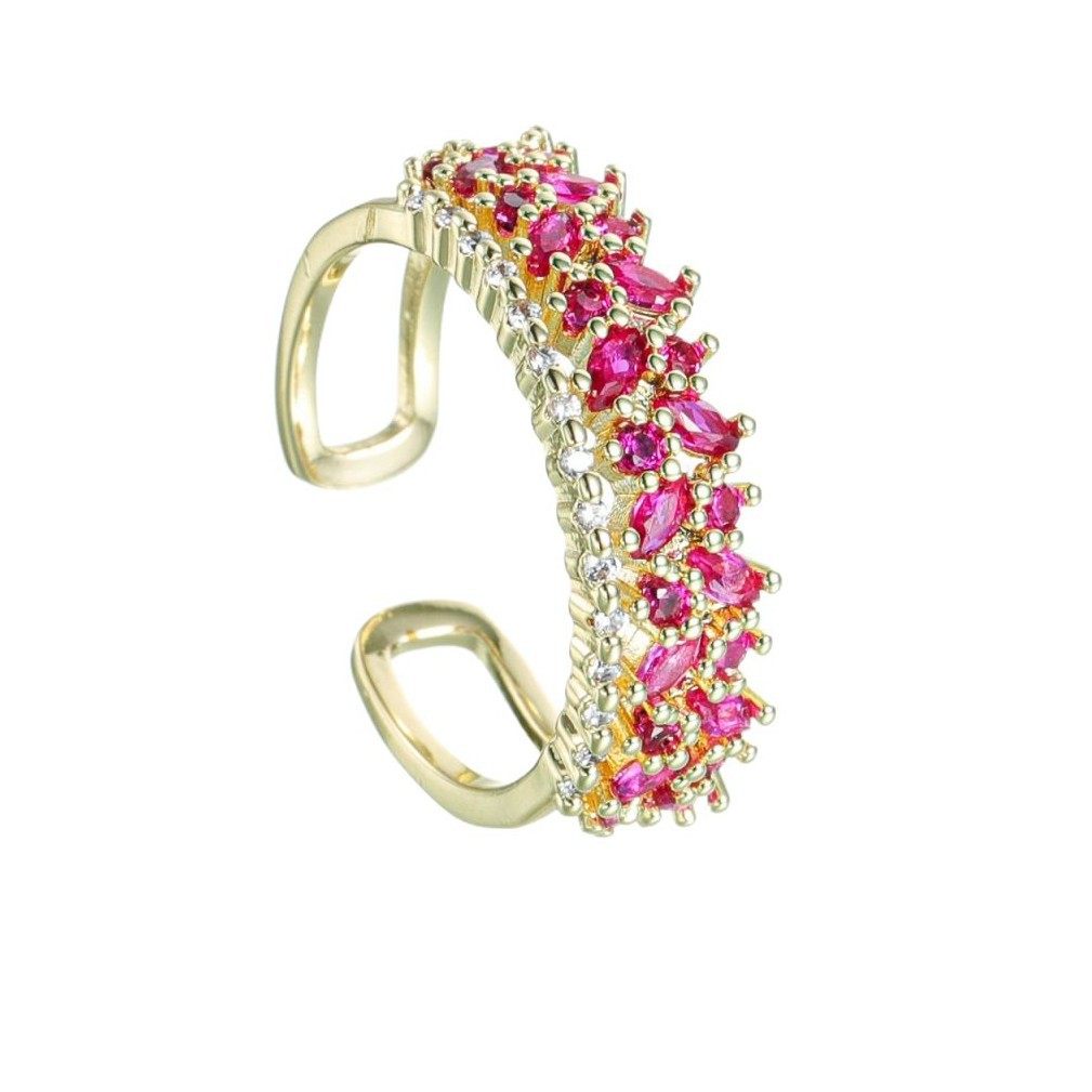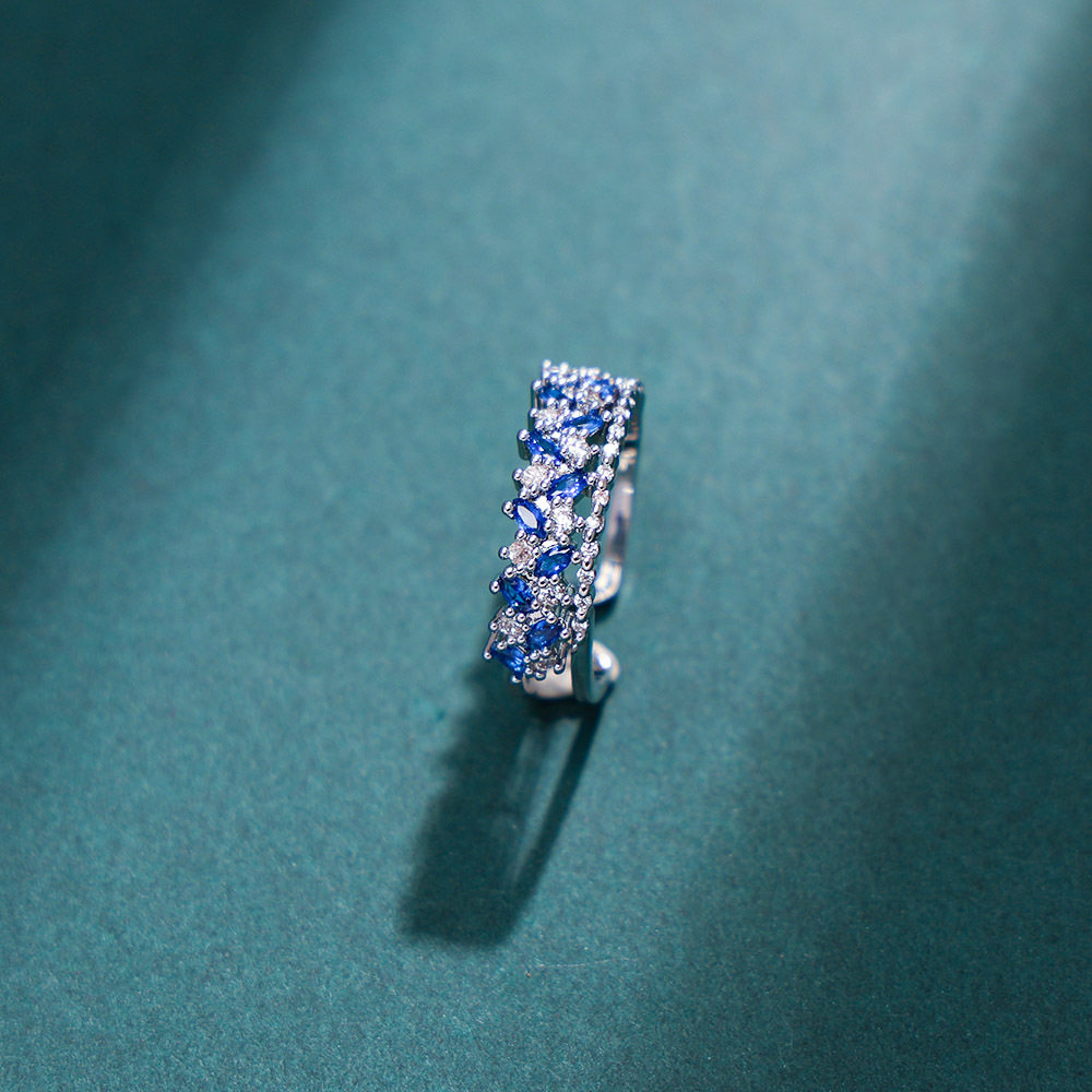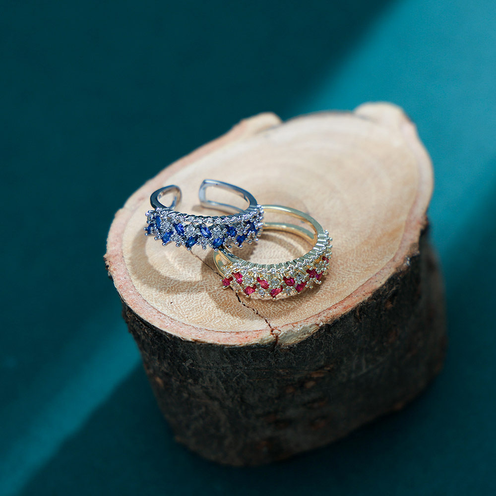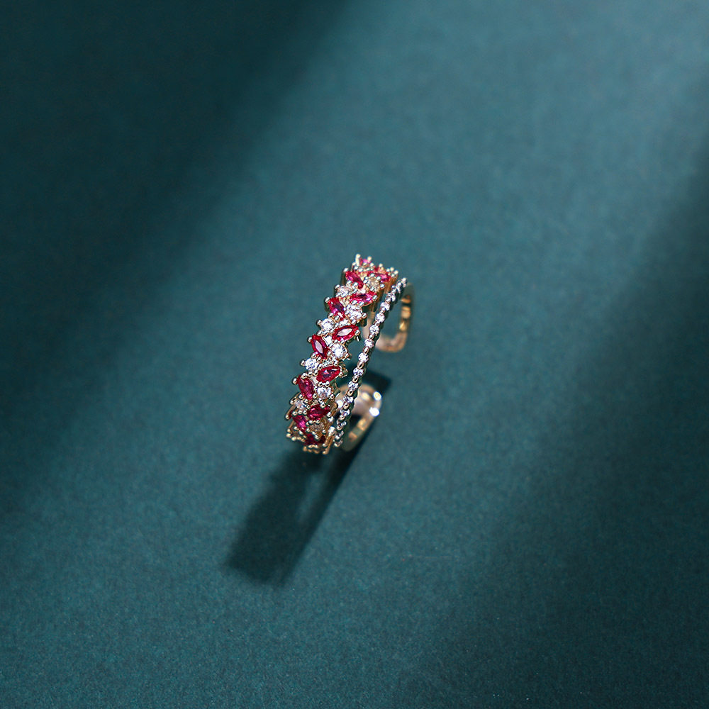 轻奢百搭红刚玉蓝宝石满钻开口戒指女高级感双排镶钻时尚潮流指环