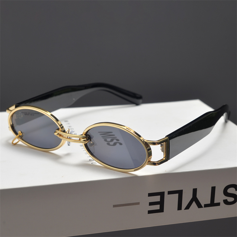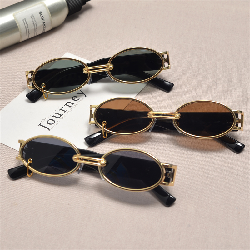 欧美复古朋克风椭圆形小框太阳眼镜女高级感圆脸显瘦嘻哈蹦迪墨镜