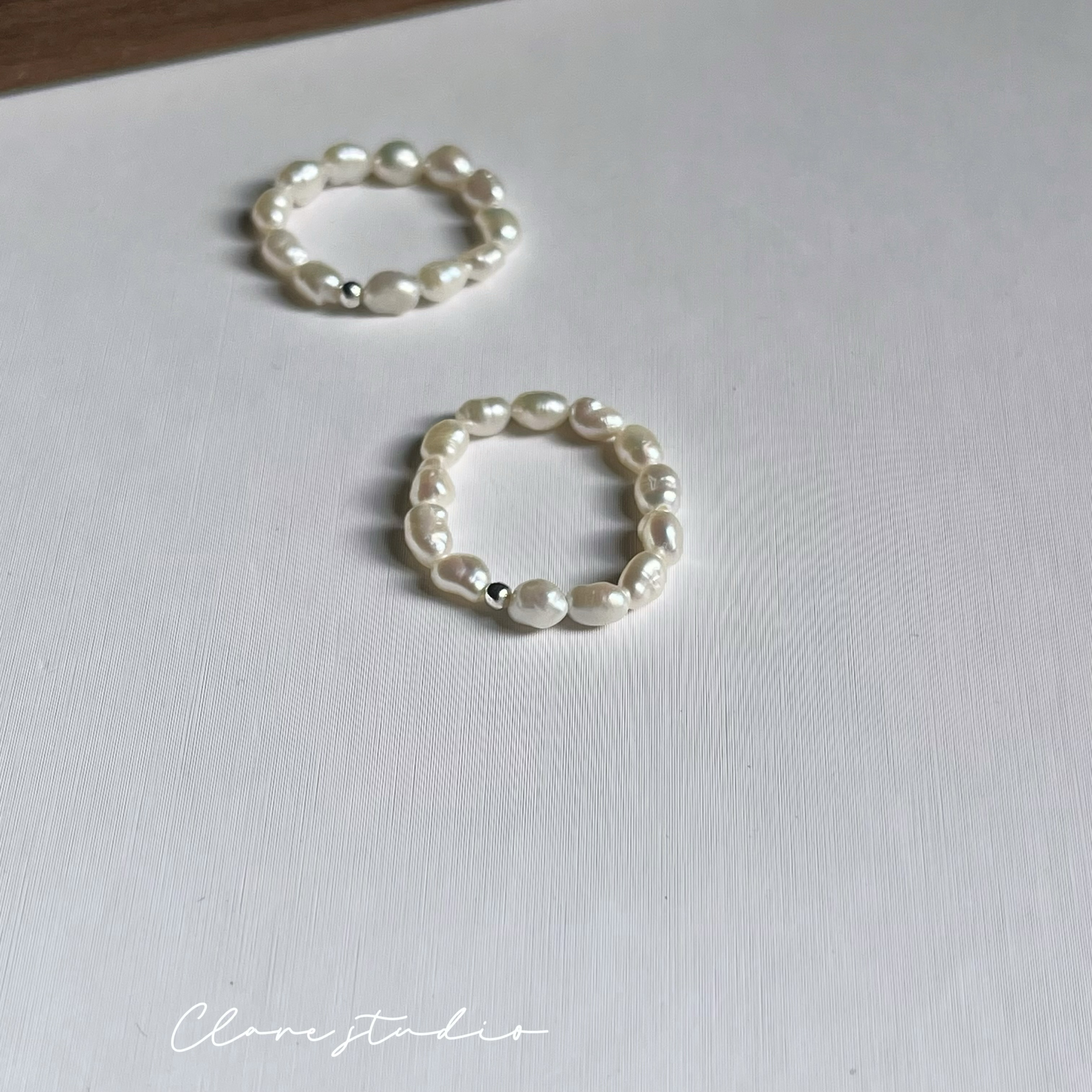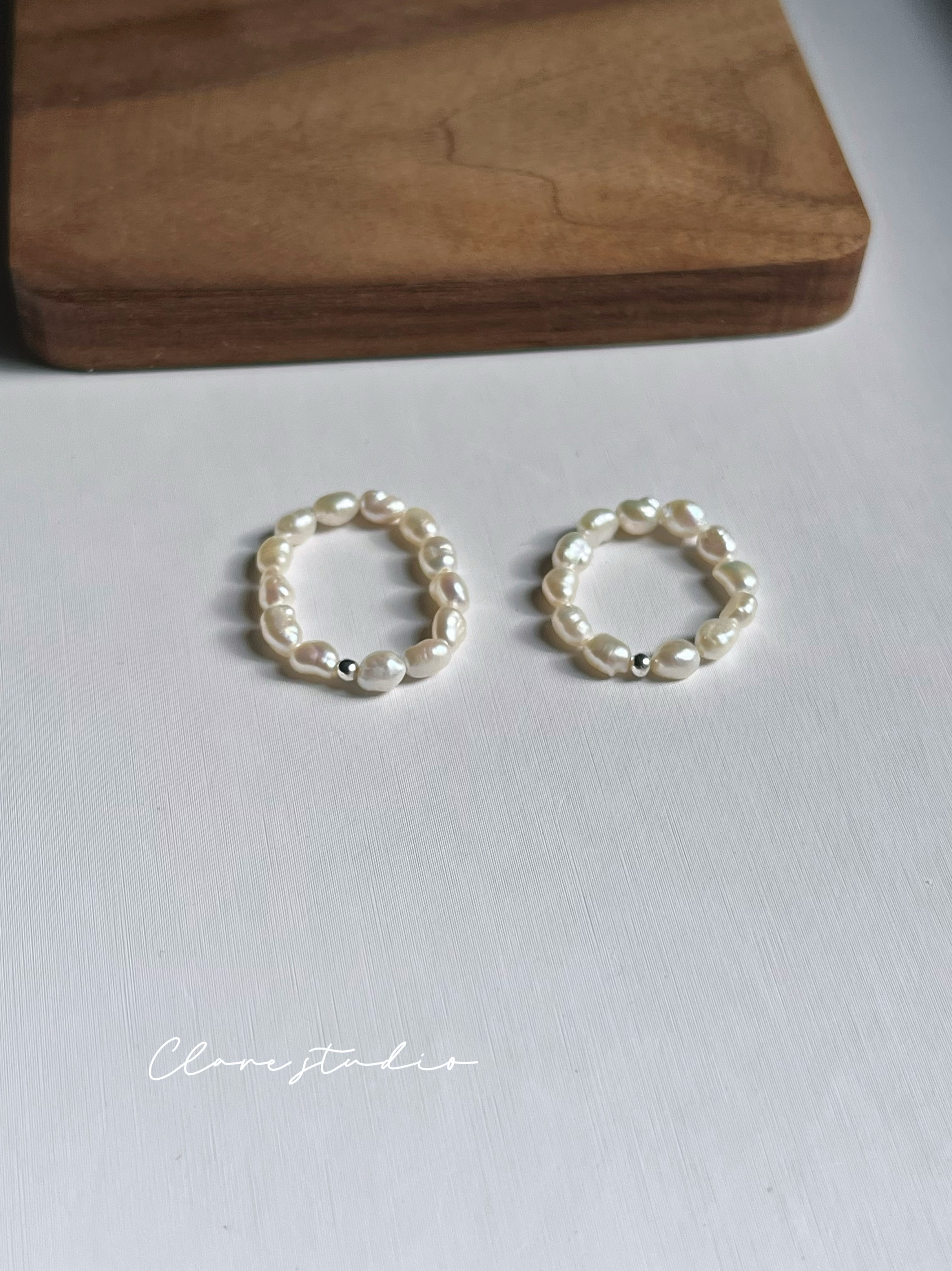 福利 天然巴洛克小珍珠弹力绳戒指小石头指环高级感叠戴尾戒女