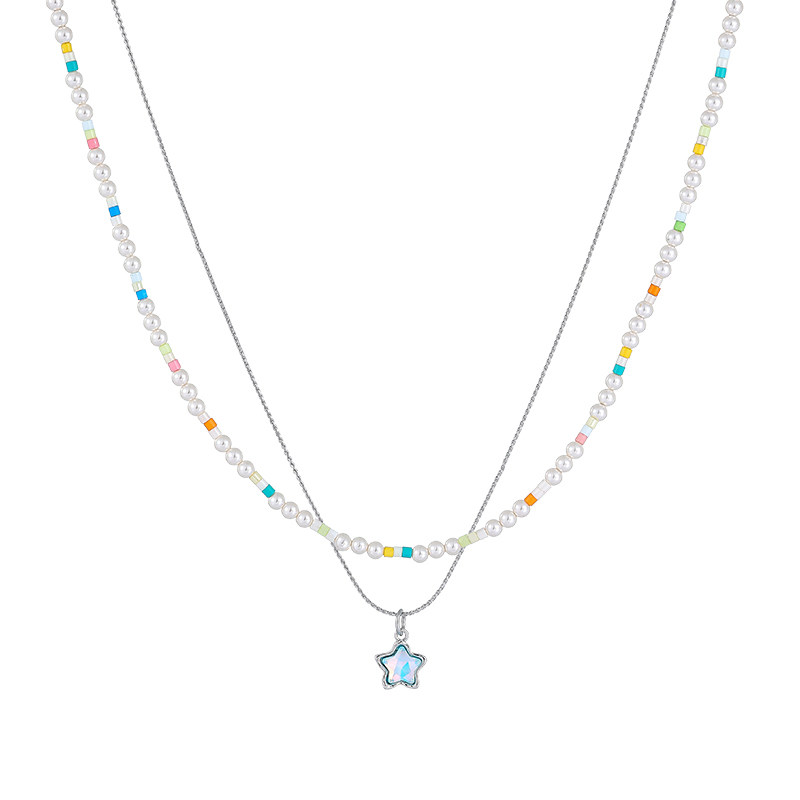 星星吊坠米珠夏日小项链配裙子双层叠戴锁骨链彩色多巴胺挂脖配饰