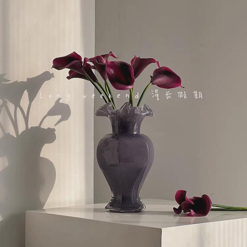 美式轻奢玻璃花瓶高端花器装饰摆件复古白色紫色水培桌面
