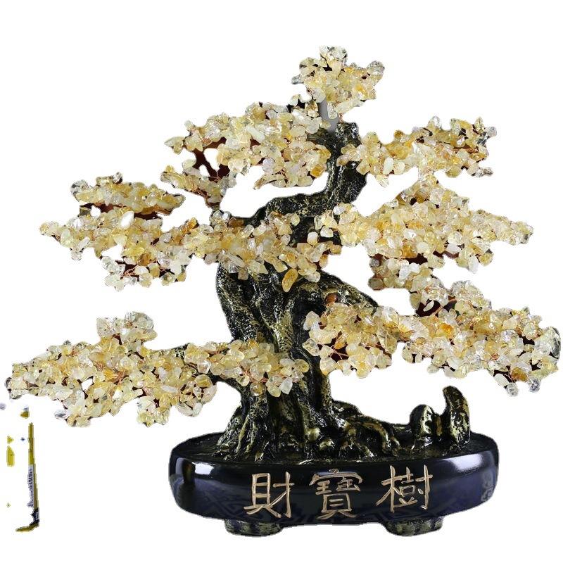黄水晶发财树酒柜装饰品摆件家居客厅电视柜摆设创意小招财摇钱树