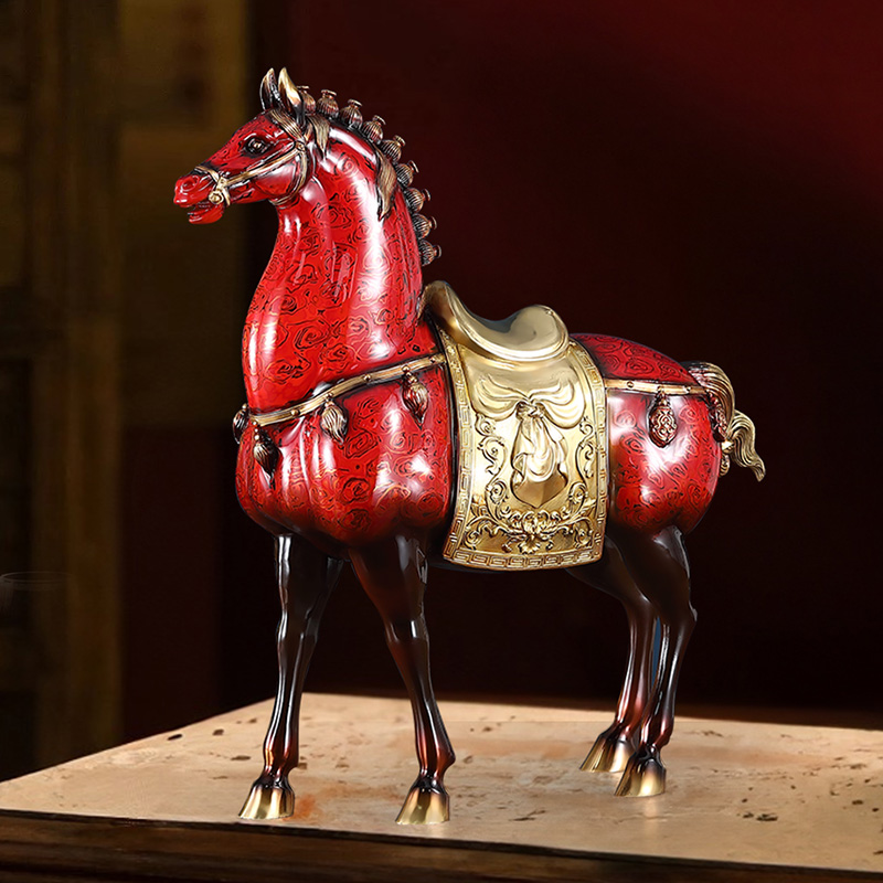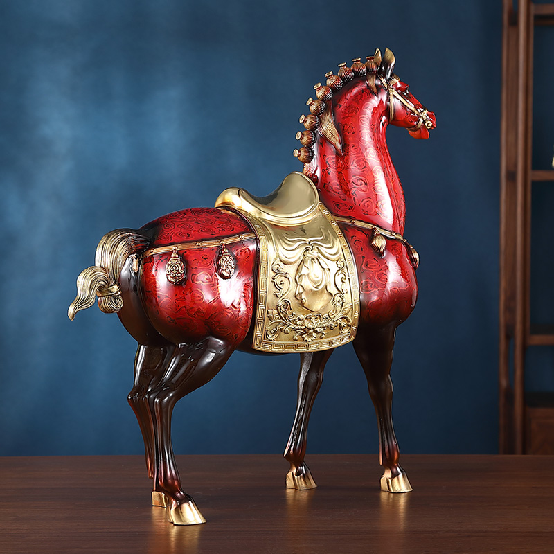 马到成功黄铜盛世唐马摆件十二生肖大漆马客厅办公室乔迁开业礼品