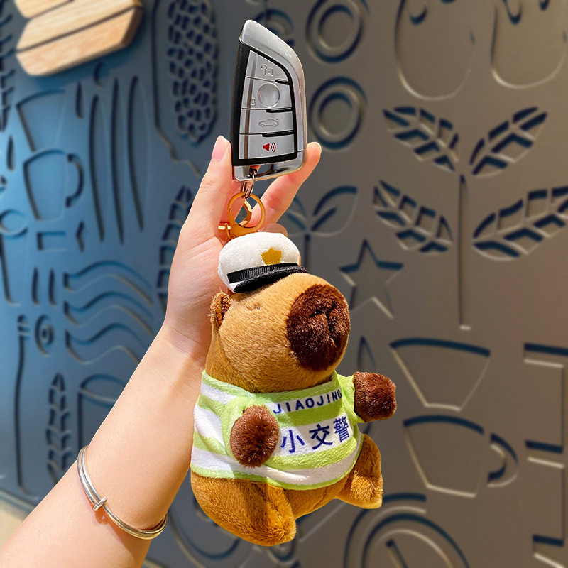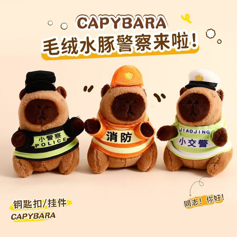 毛绒水豚警察钥匙扣挂件创意卡通公仔玩偶书包挂饰情侣小礼品批发