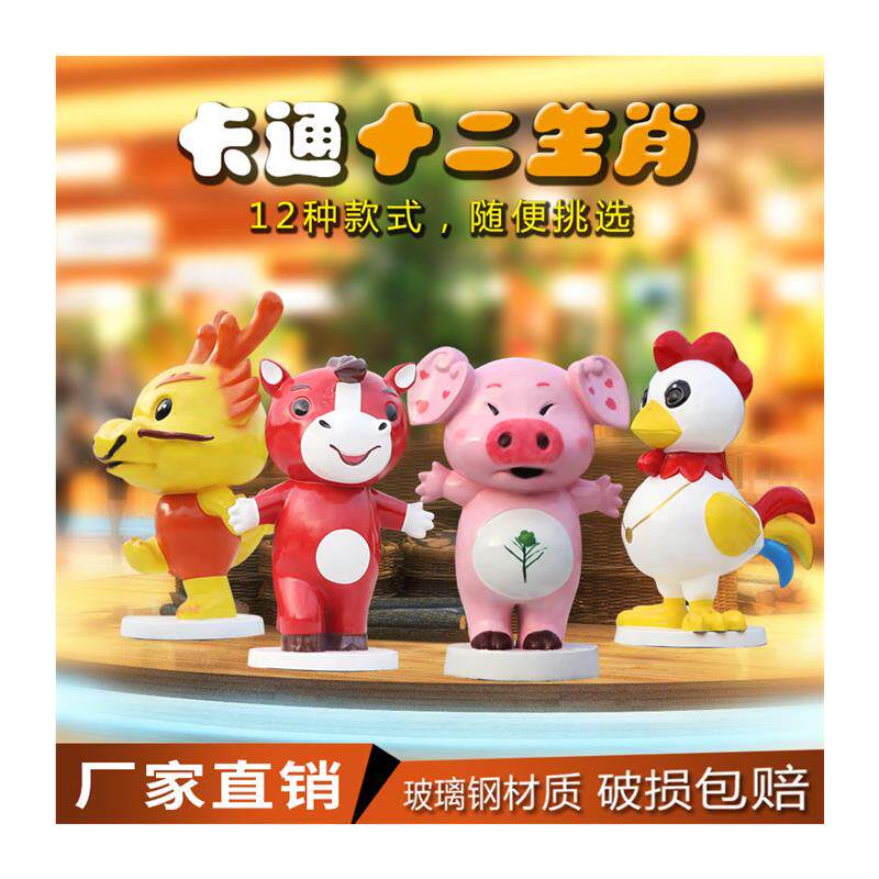 户外卡通玻璃钢十二生肖雕塑商场景区公园草坪落地景观装饰摆件