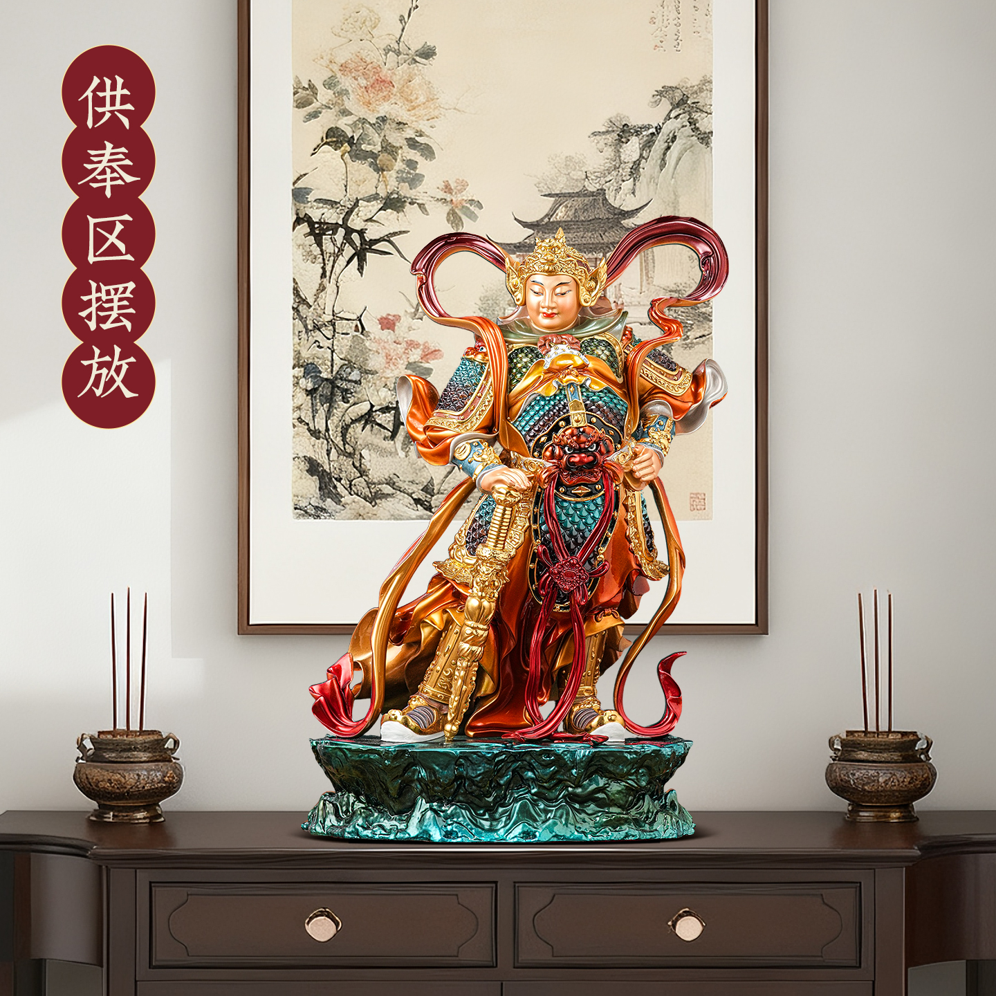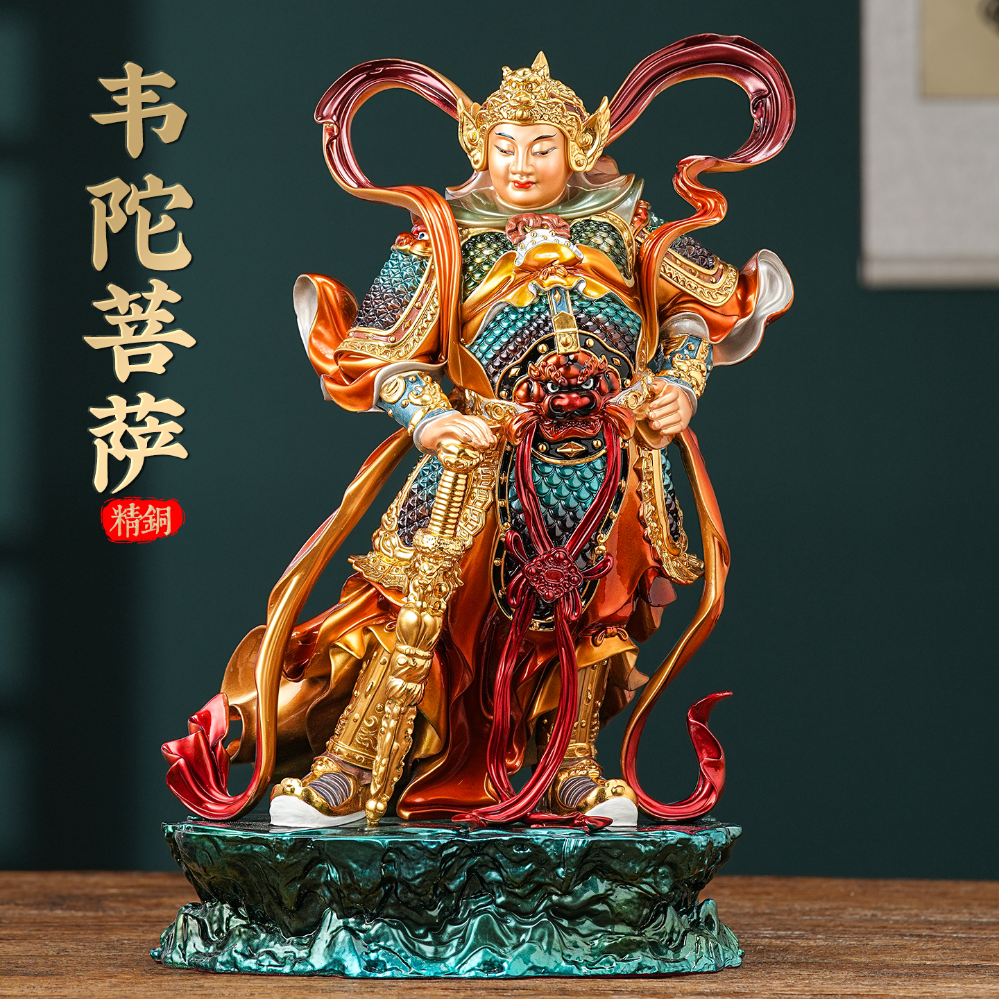大号全铜韦陀菩萨铜像韦驮摆件佛像黄铜家用佛堂供奉新中式工艺品