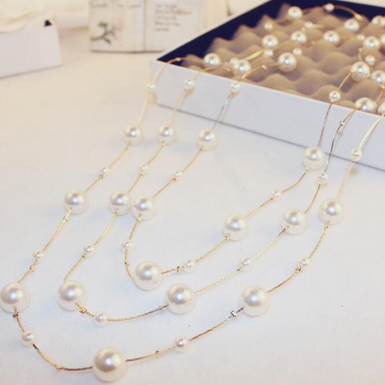 日韩时尚经典多层珍珠毛衣链气质百搭复古长项链女配饰品挂件