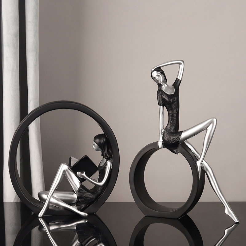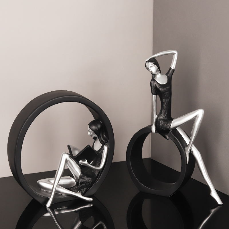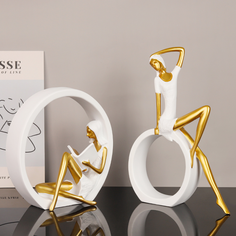北欧简约现代看书女孩人物摆件创意客厅玄关酒店柜子样板间装饰品