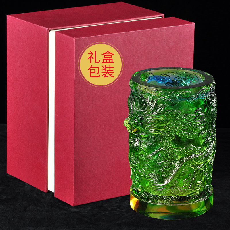 琉璃笔筒摆件桌面工艺品实用退休纪念品送老师长辈礼品书房装饰品