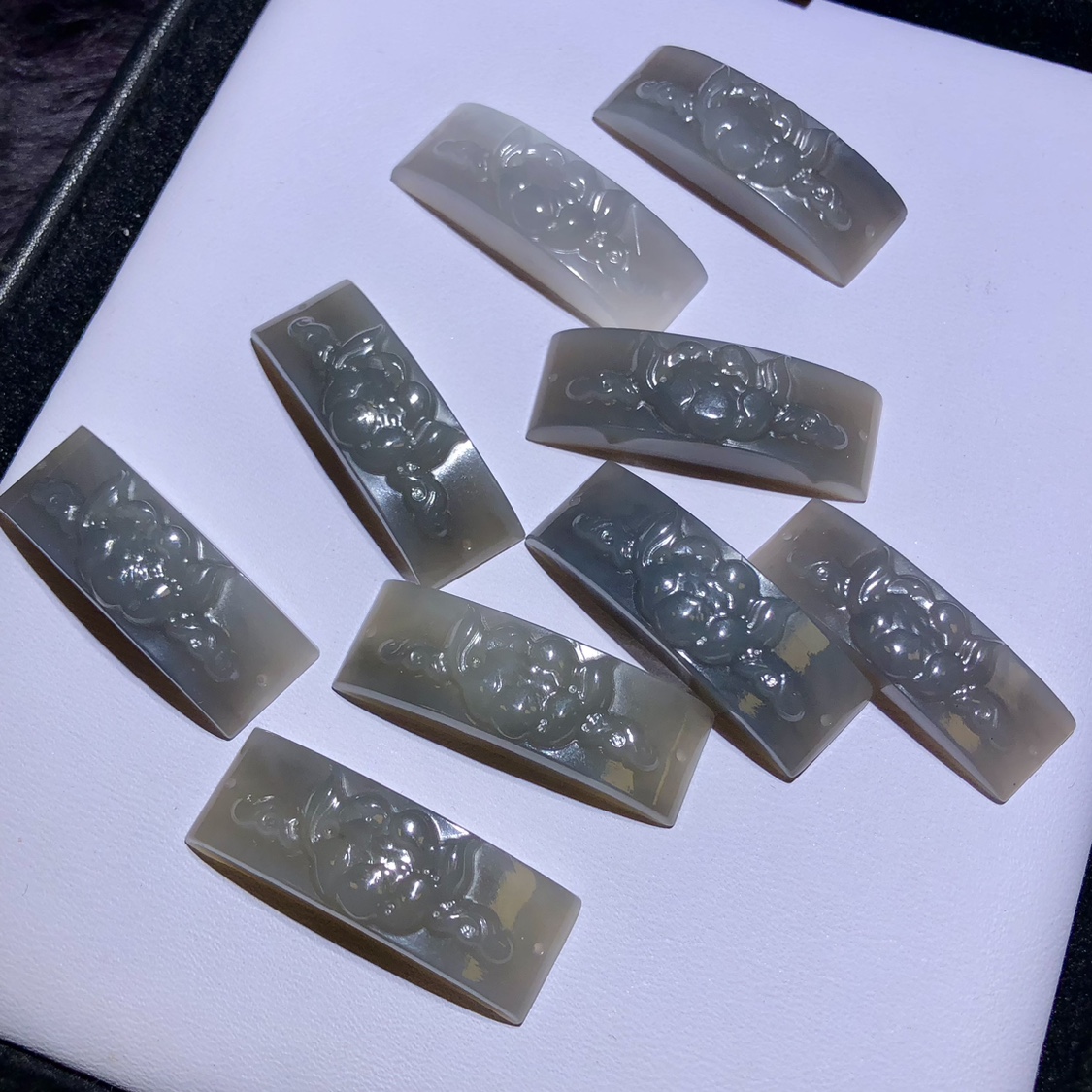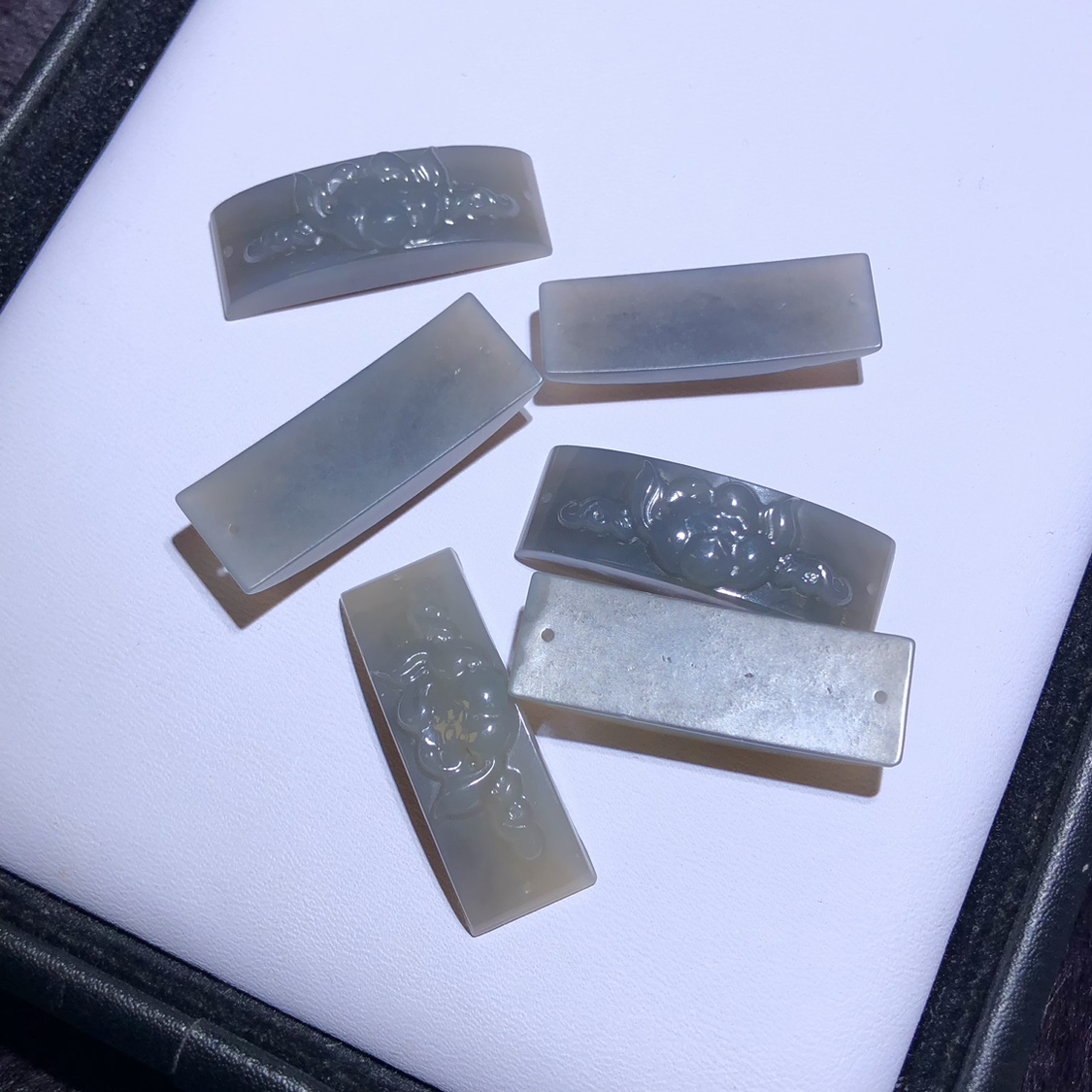 GG0845 天然和田玉烟紫莲花手腕牌双孔diy原创手链手镯配件紫罗兰