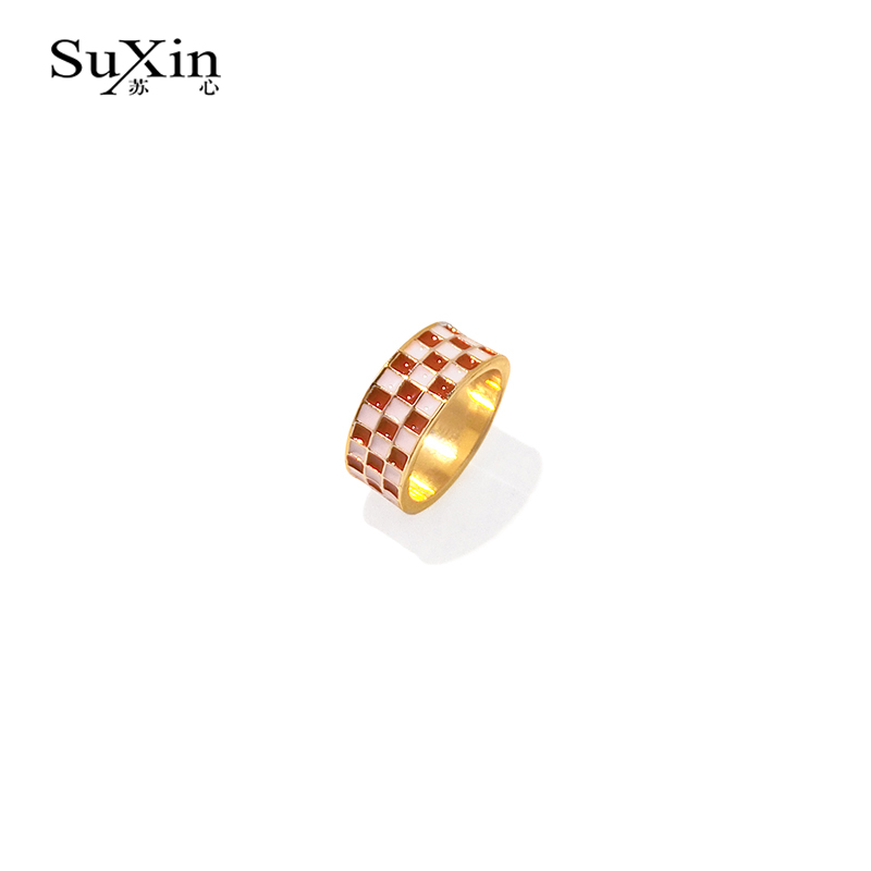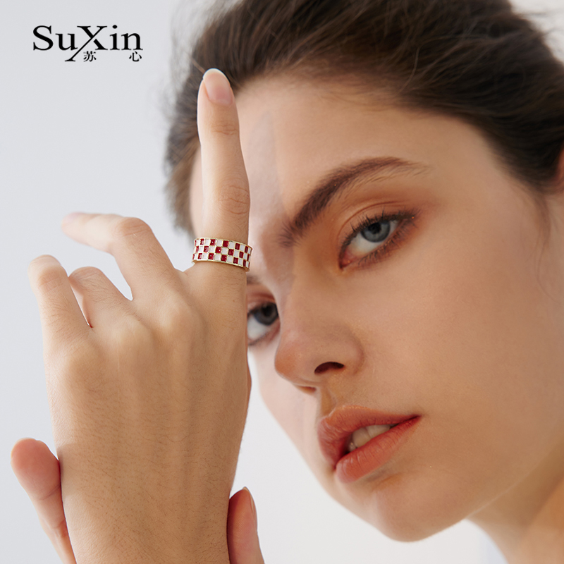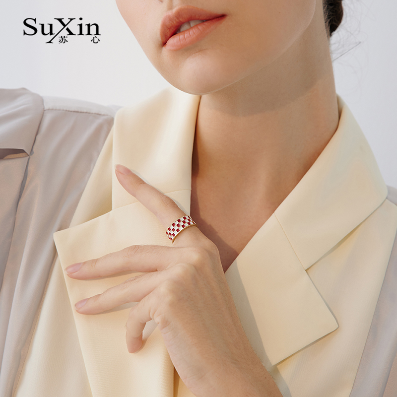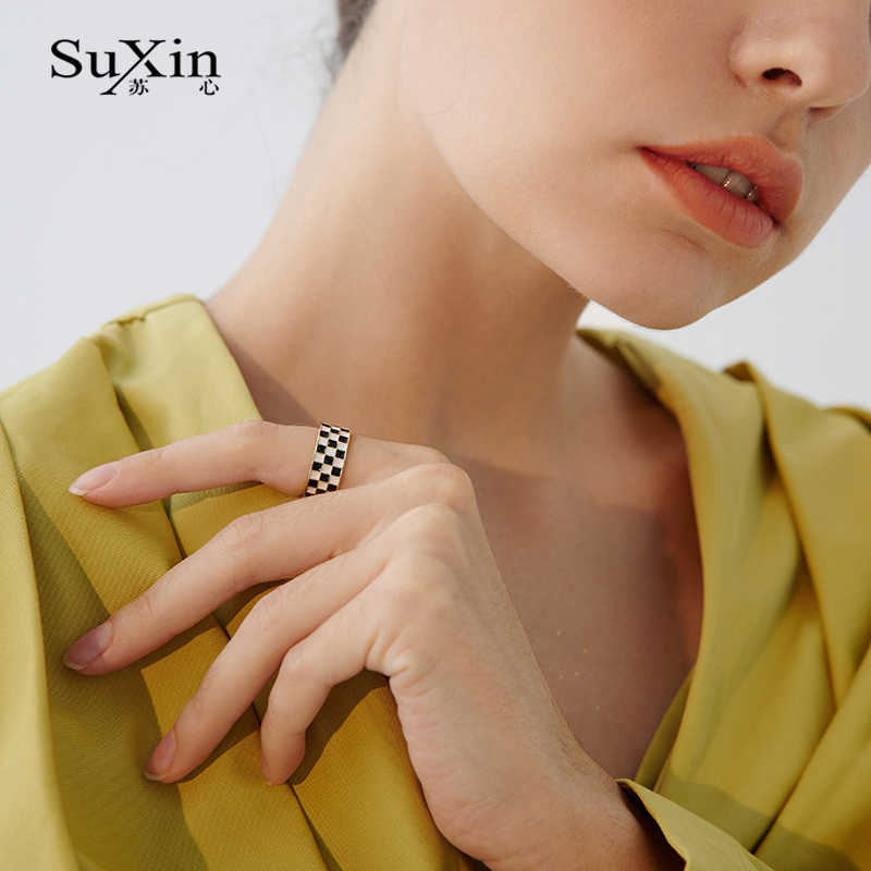 苏心几何设计款格子圆圈戒指2024年新款日常简约食指戒素圈手饰