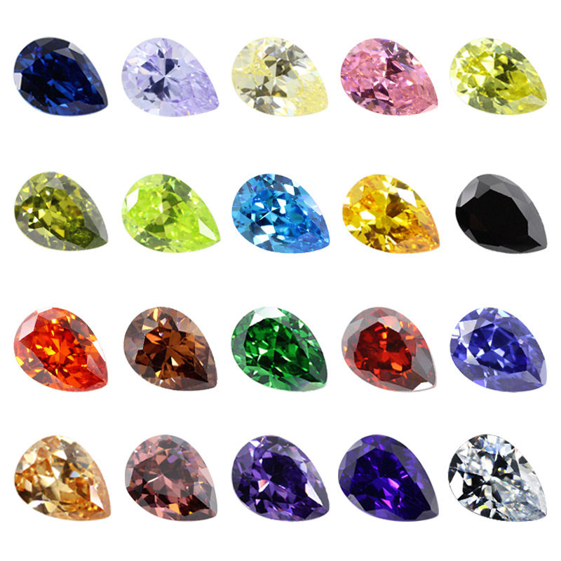 梨形锆石彩色组合 刻面尖底镶嵌用水滴形立方氧化锆裸石人造宝石