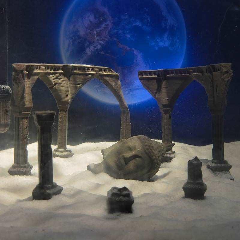 冬官F87T9M58手作泥鱼缸景摆件造装饰品苔藓微景水观废盆墟建筑物