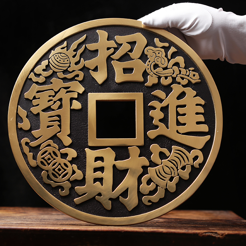 纯黄铜《招财进宝》大铜钱客厅装饰风水摆件《镇宅之宝》店铺挂件
