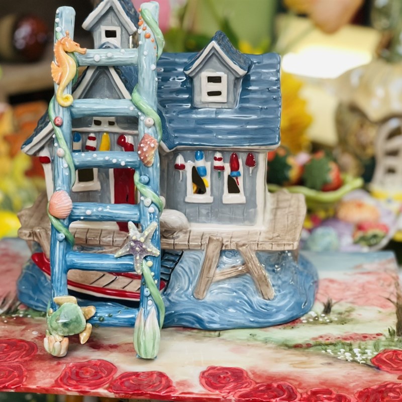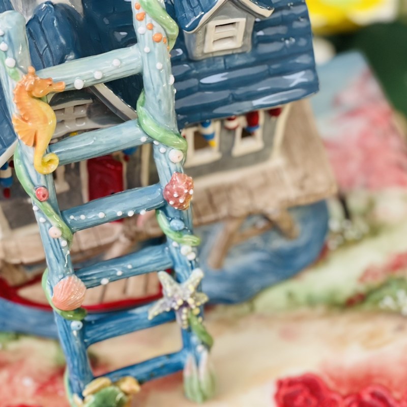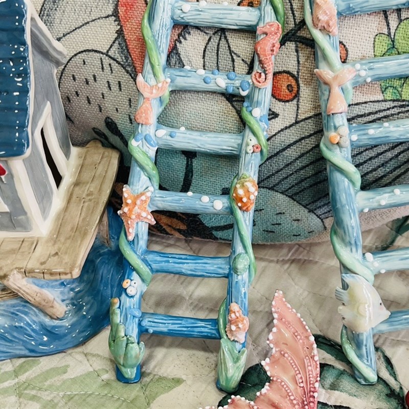 瓷蓓高温釉下彩定制手工陶瓷梯子鱼缸造景摆台件海洋水草海龟贝壳