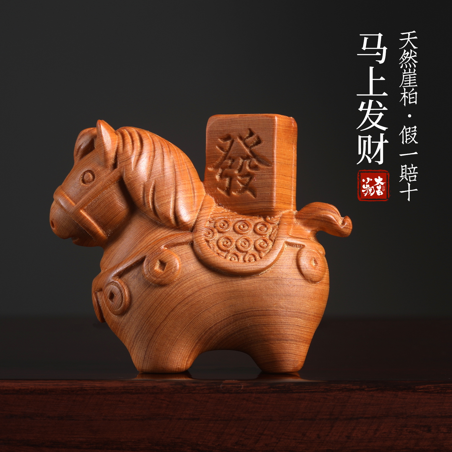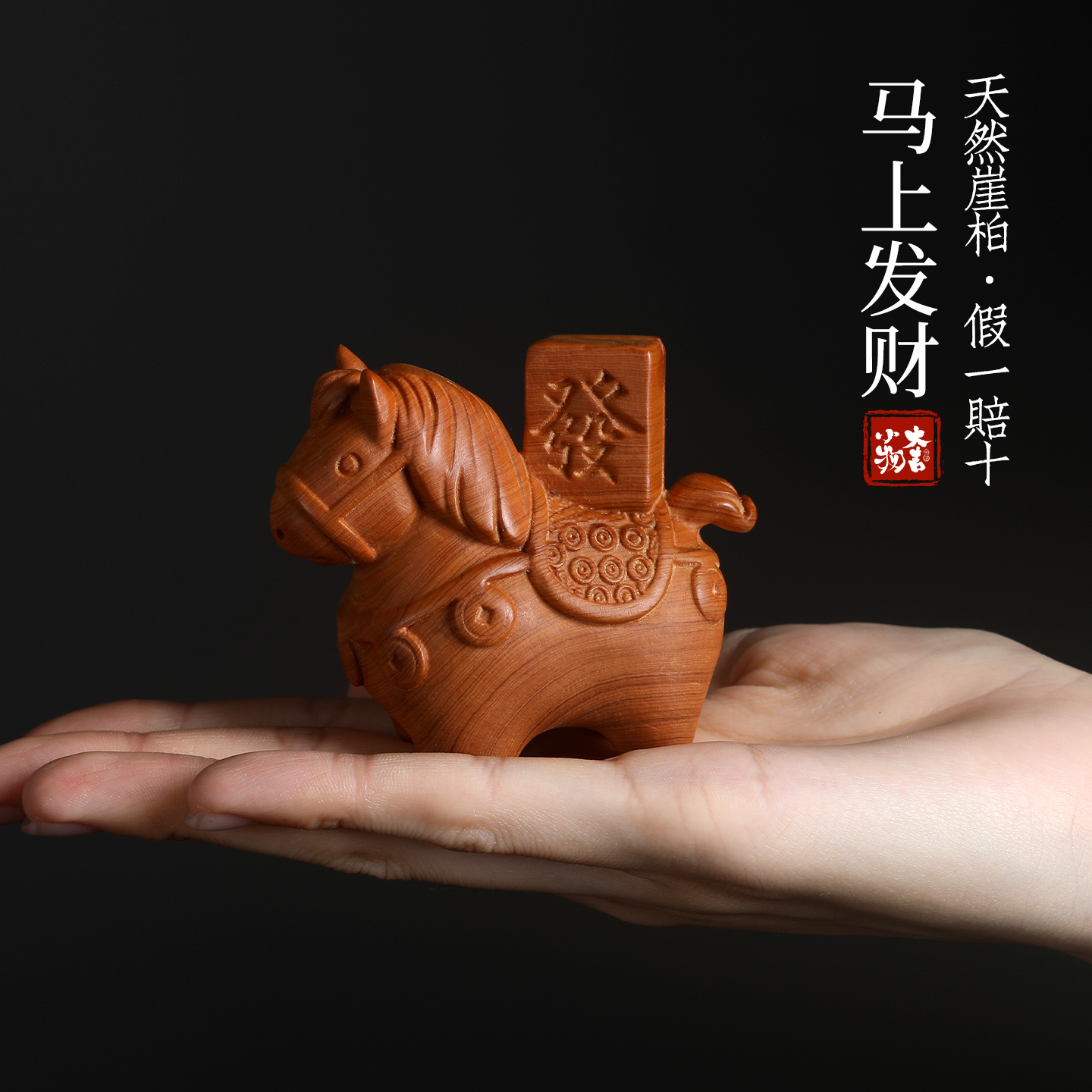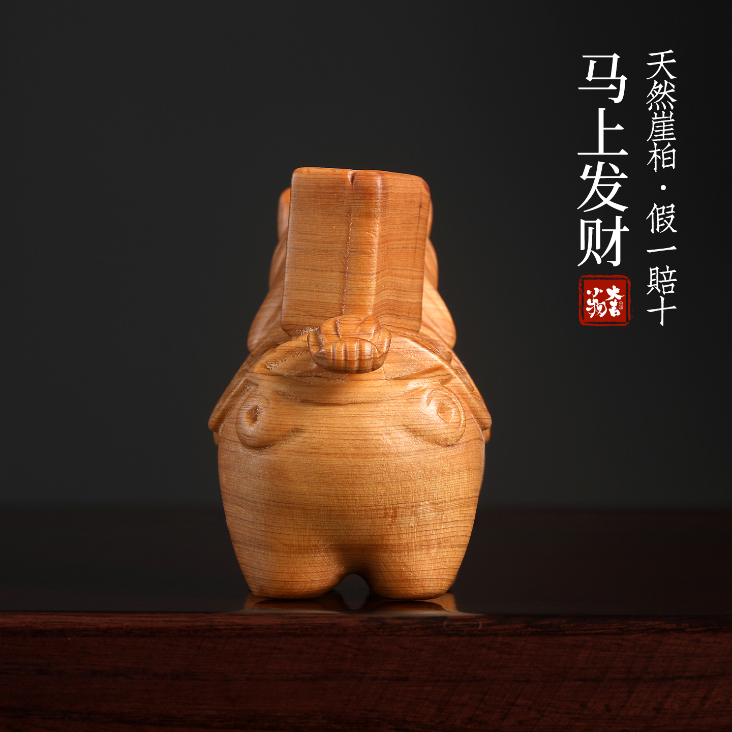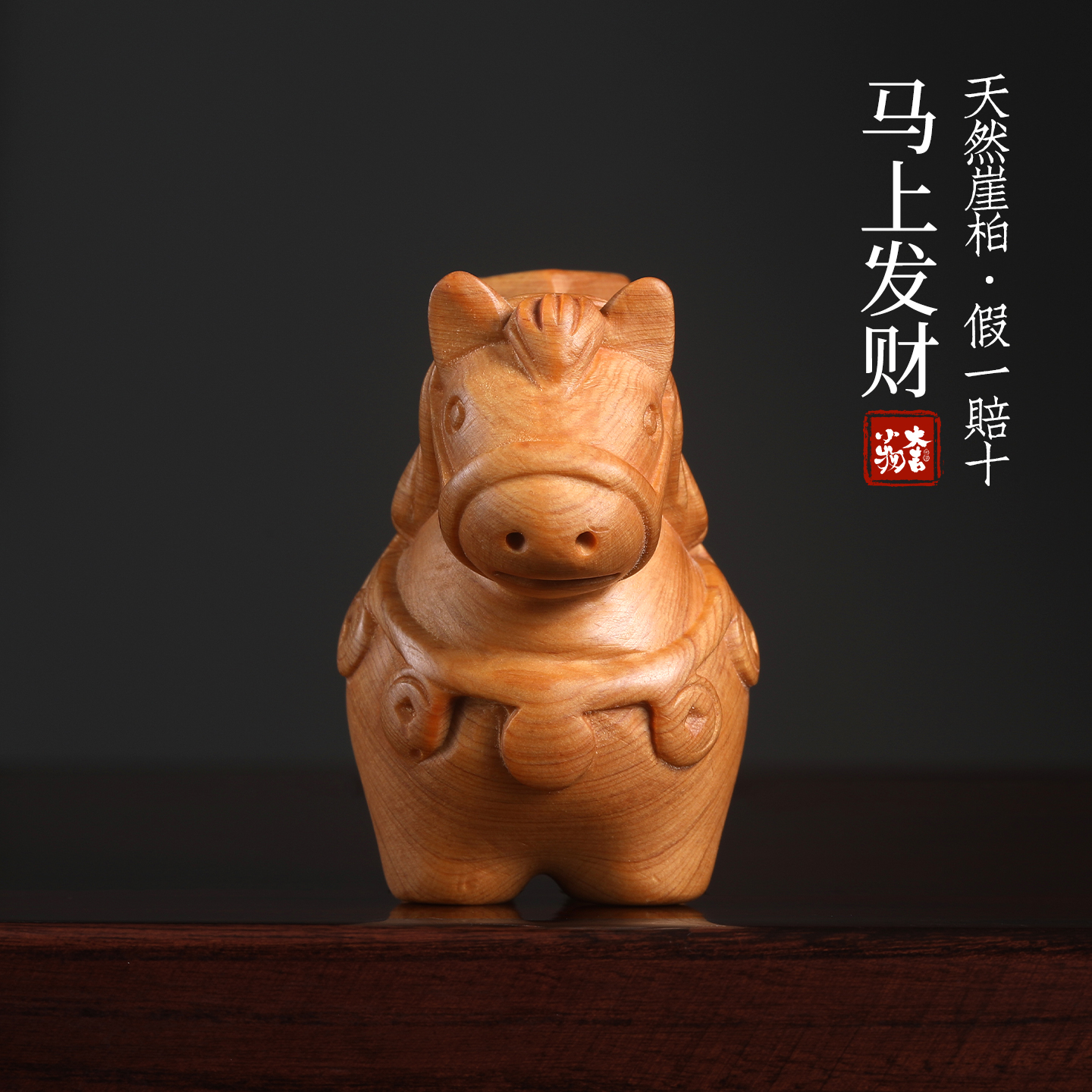 天然崖柏木雕刻马上发财马摆件属马本命年文玩手把件治愈系工位