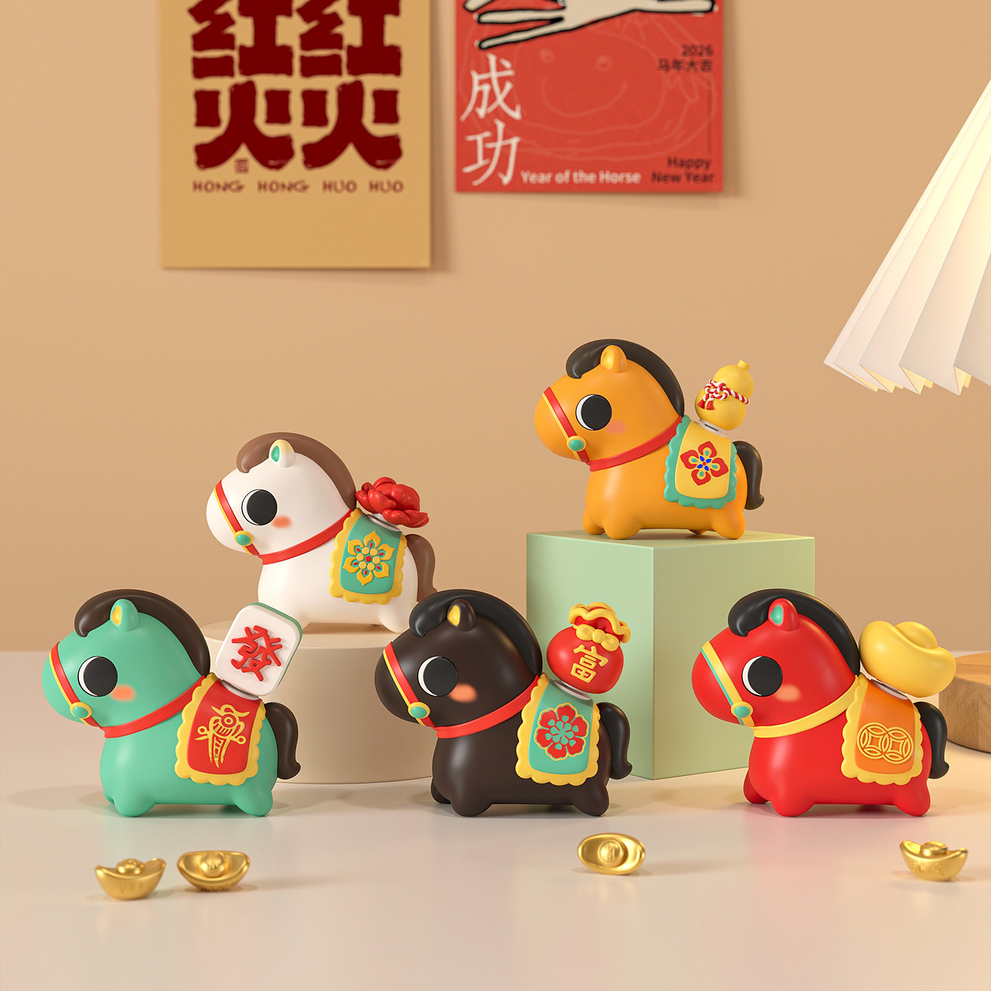 2026马年吉祥物公仔摆件马上有钱生肖小马桌面装饰品创意新年礼物