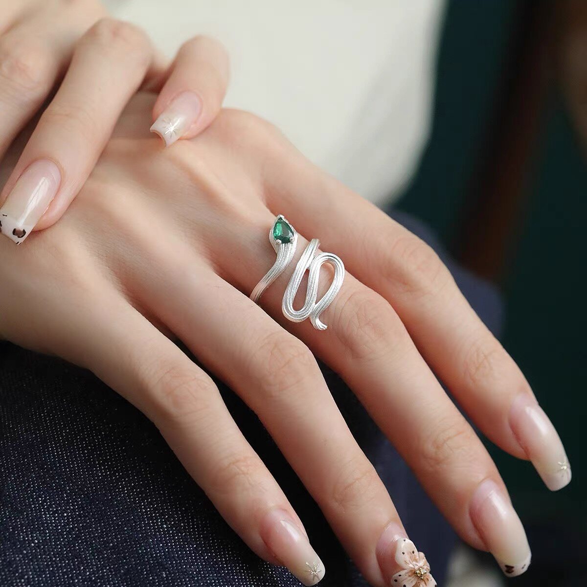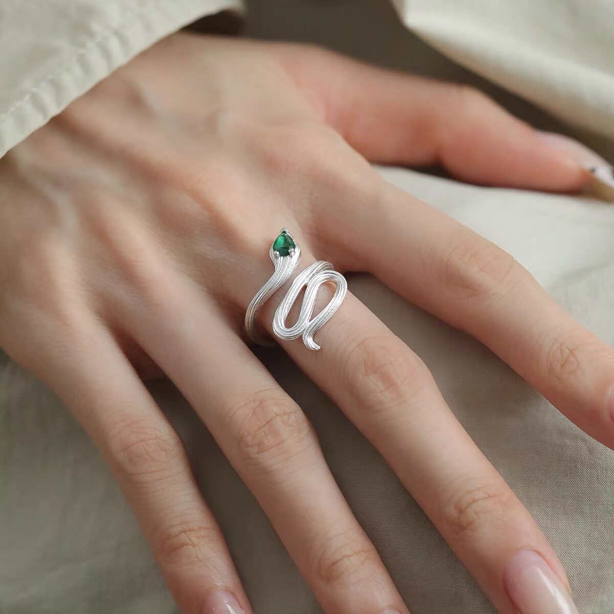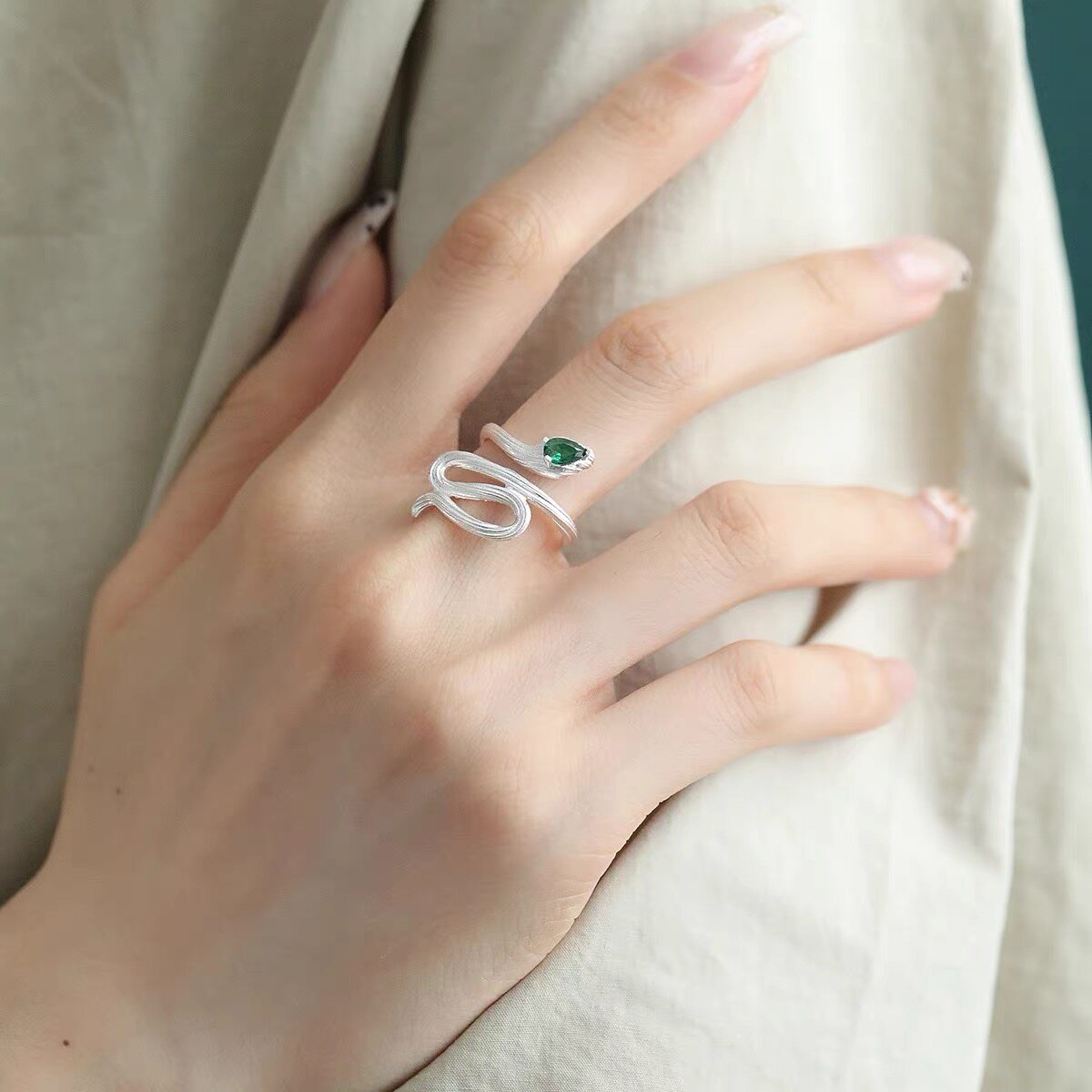 925银水滴灵蛇开口戒指女新中式小众设计感时尚百搭个性食指戒