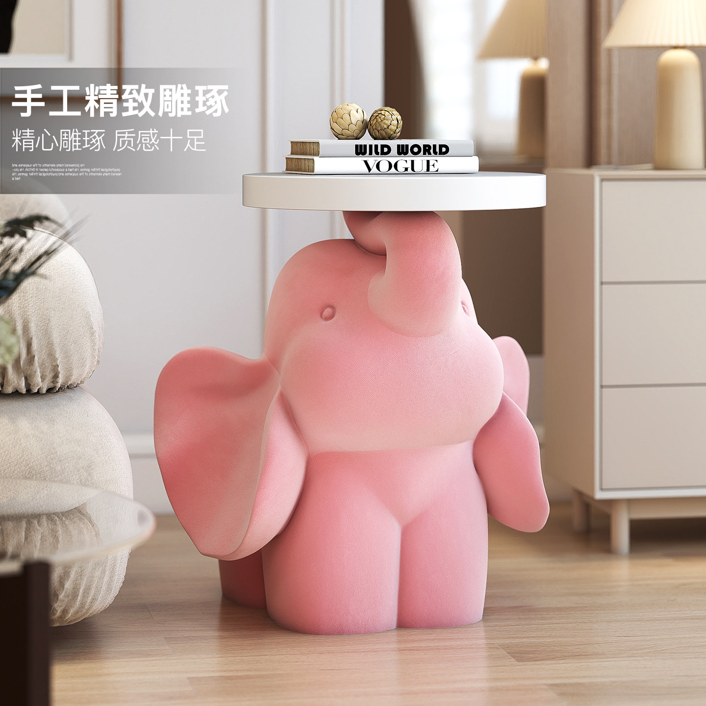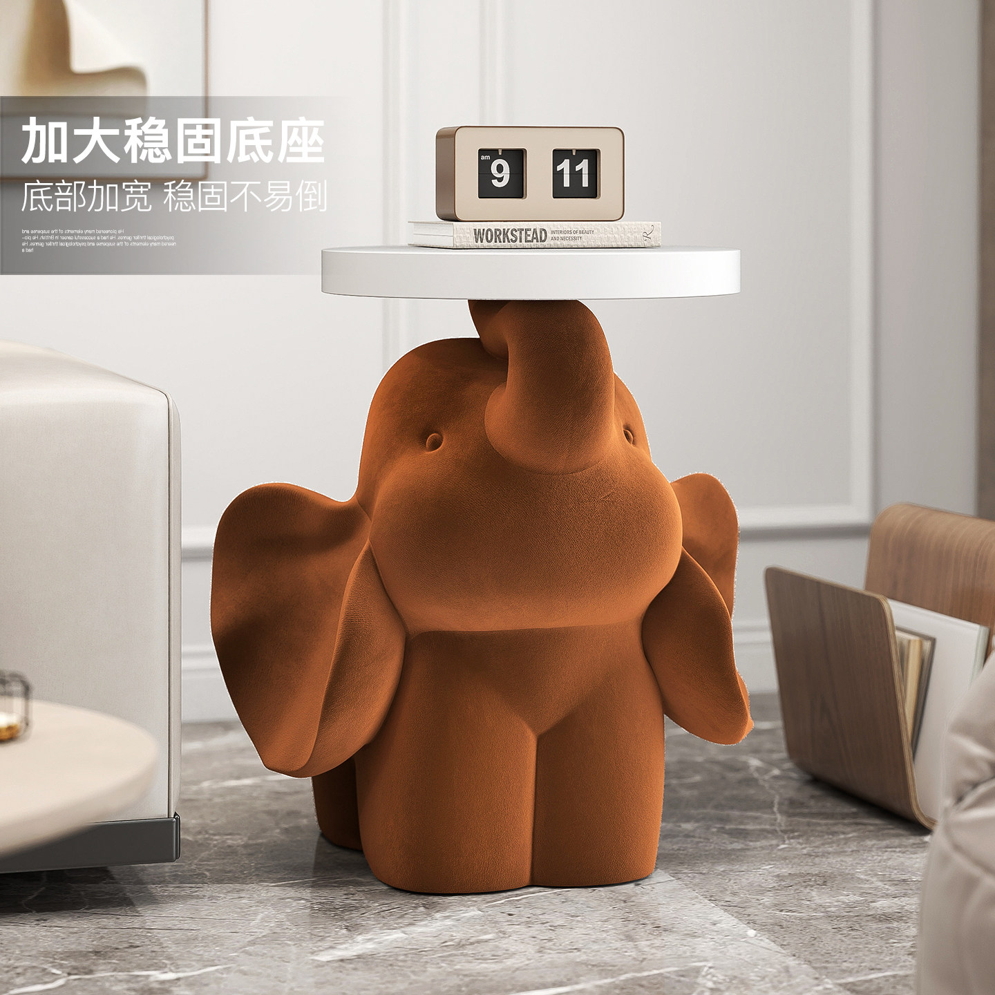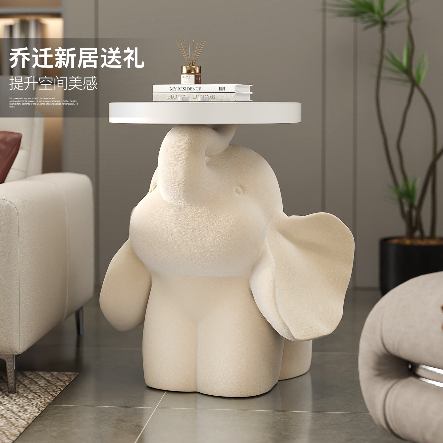 奶油风大象落地摆件植绒家居软装饰品客厅沙发旁边几茶几乔迁礼品