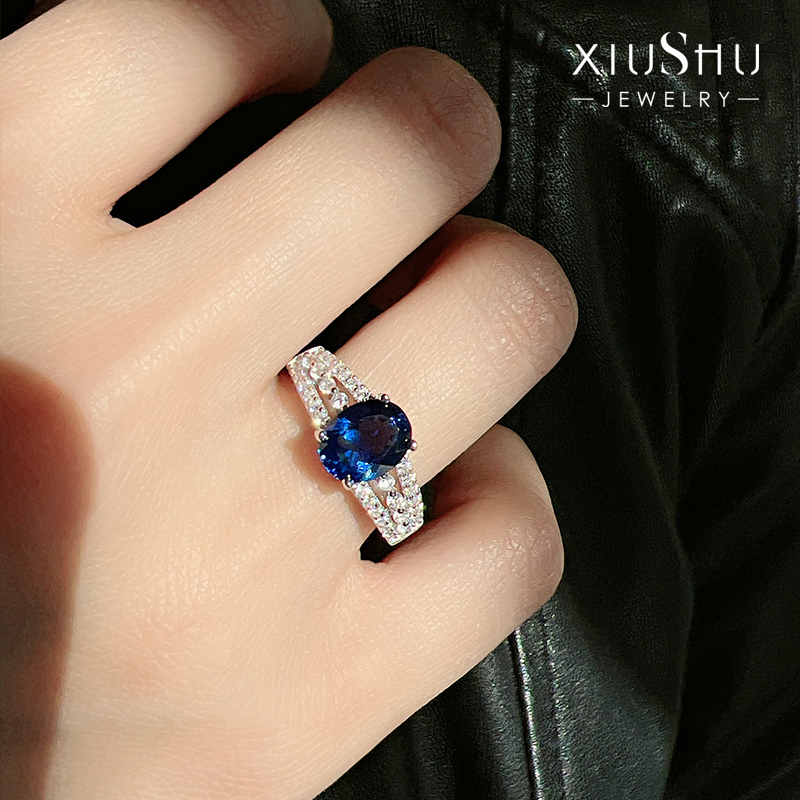 新款椭圆皇家蓝色925银戒指镶嵌蓝刚玉气质小众设计百搭简约复古