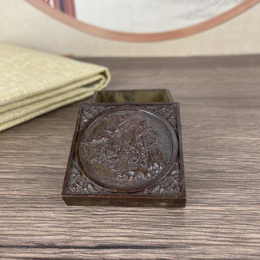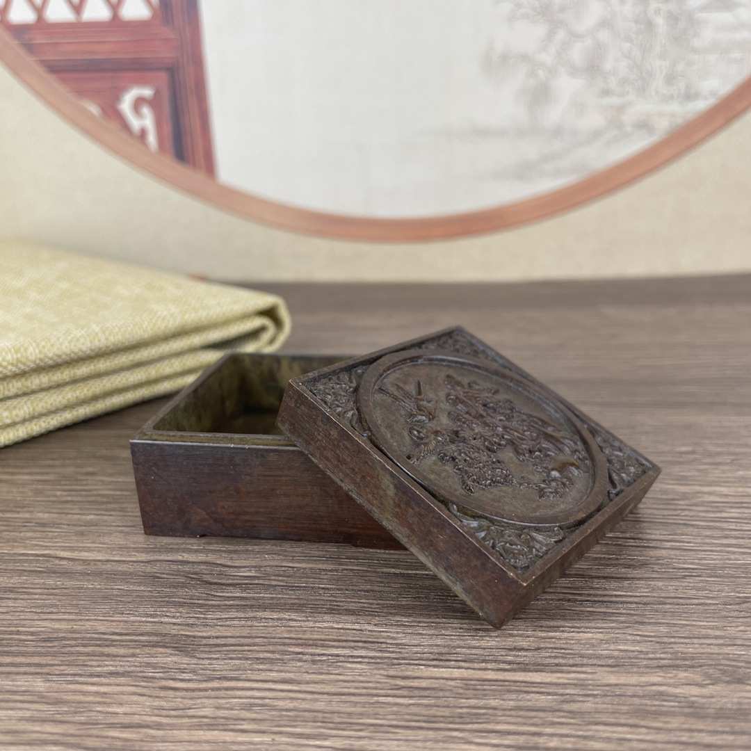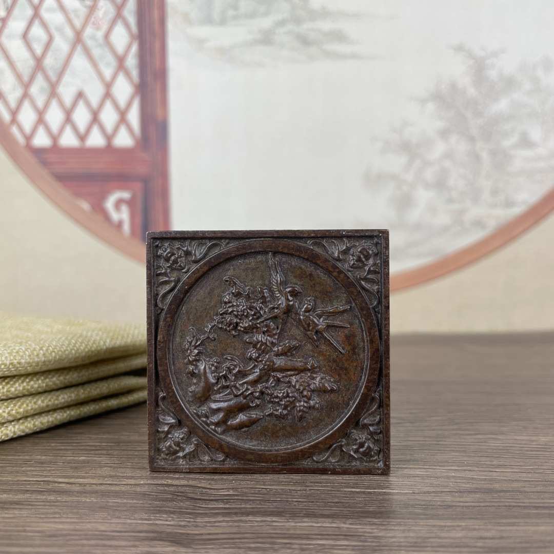 做旧铜仿古飞燕四方墨盒摆件 新中式家居书房办公室桌面文房四宝