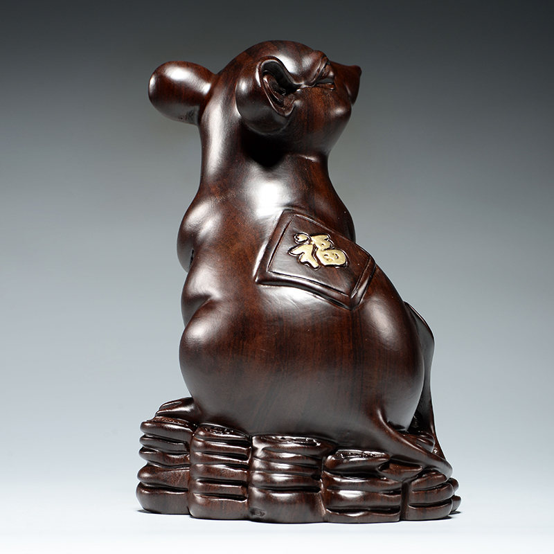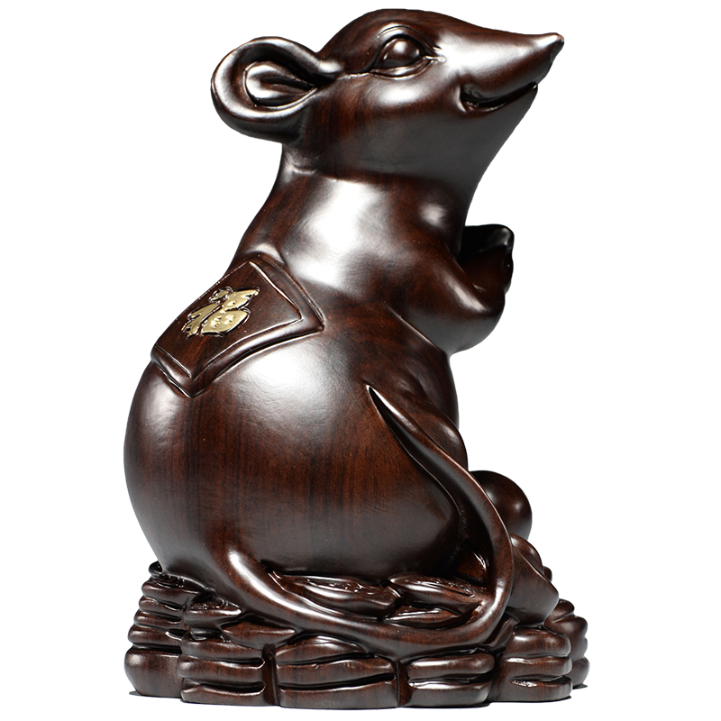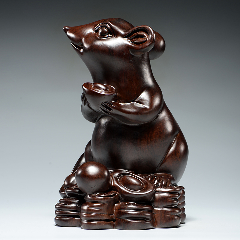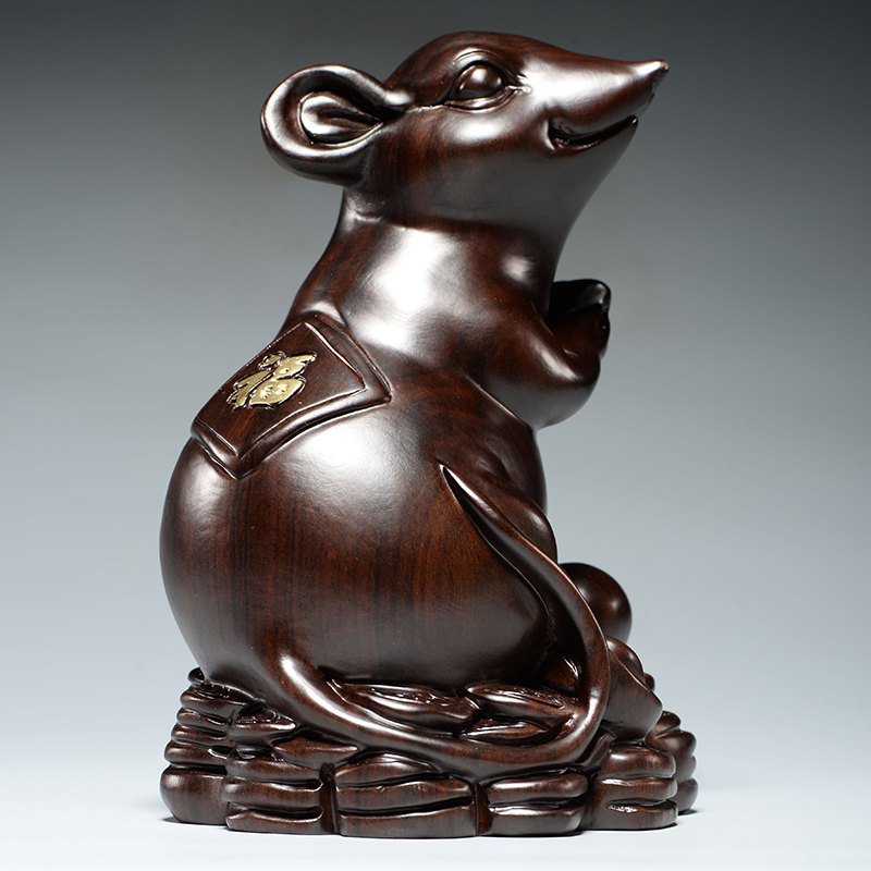 实木鼠摆件十二生肖摆设木头鼠家居装饰红木缺角补角吉祥物工艺品