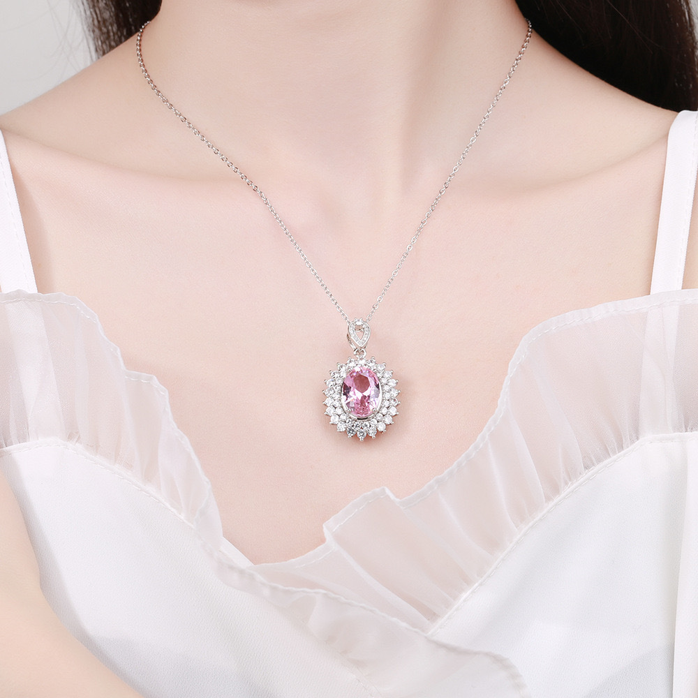 欧美新款跨境奢华满钻吊坠锆石女士项链蛋形太阳花锁骨链饰品