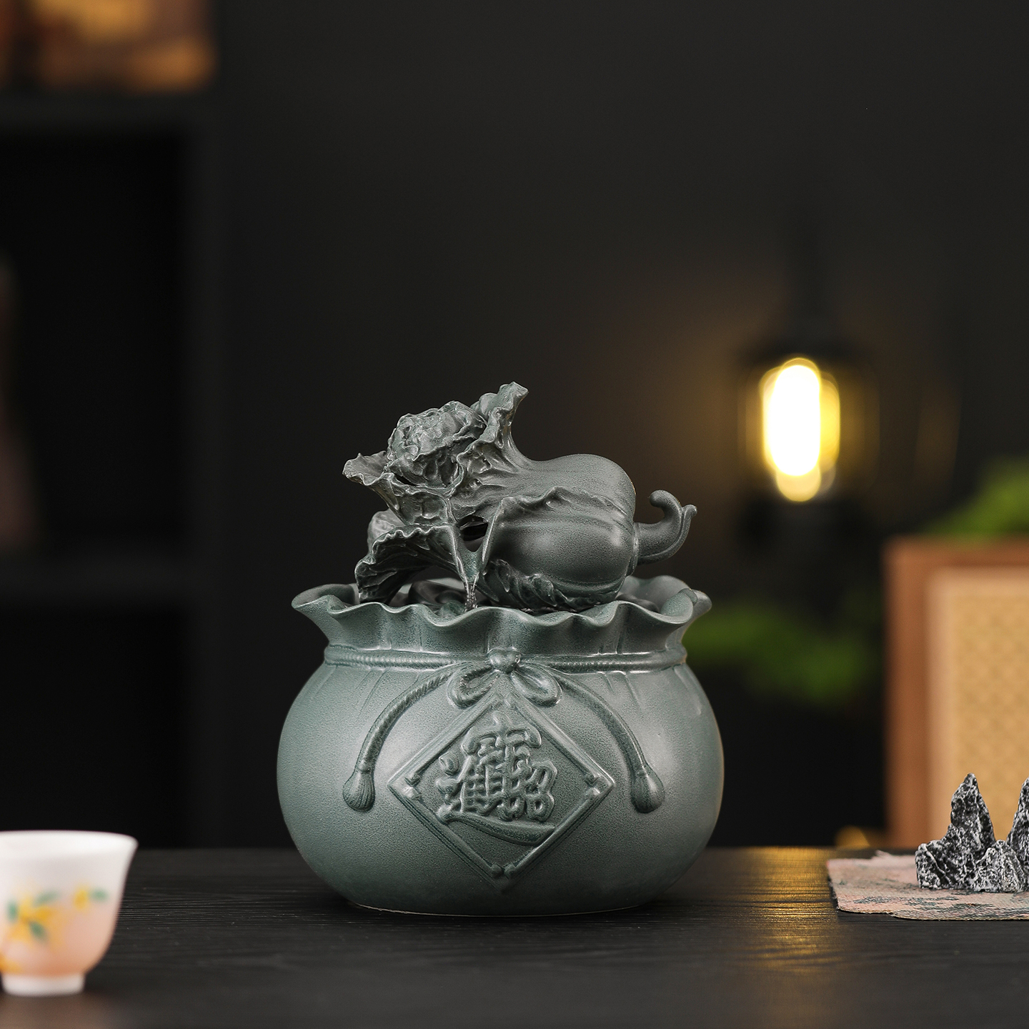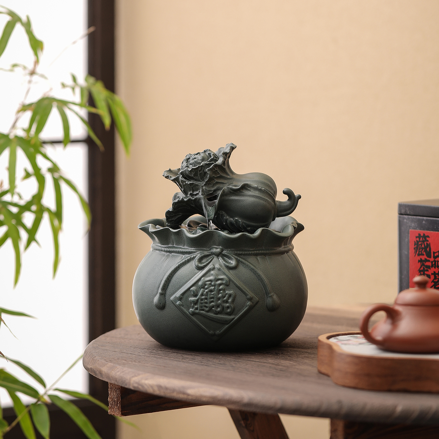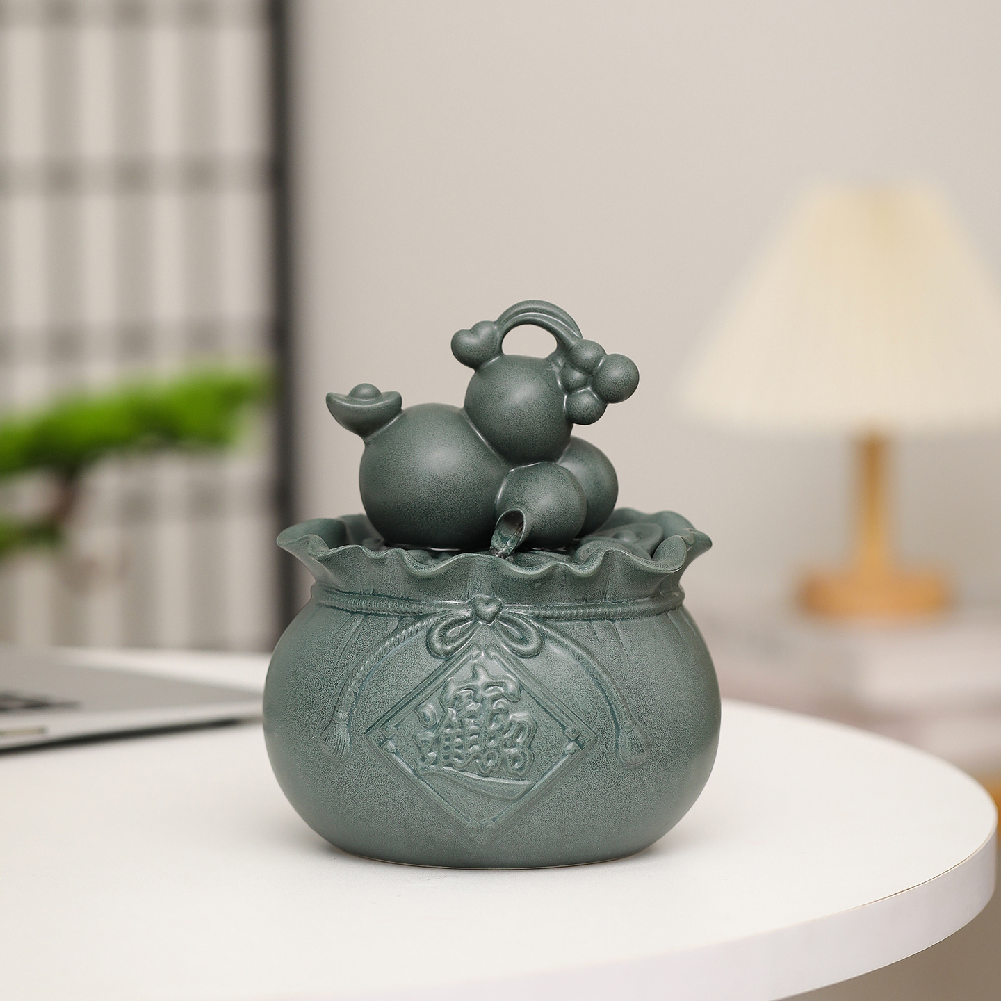 百财富满袋招财流水摆件循环水玄关客厅酒柜桌面摆设开业乔迁礼物