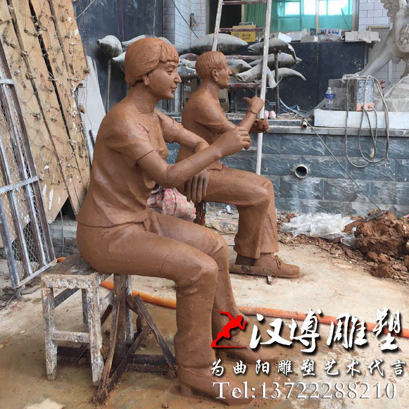 玻璃钢仿铜人物雕塑泥塑模型吃火锅主题雕塑公园园林景观小品雕塑