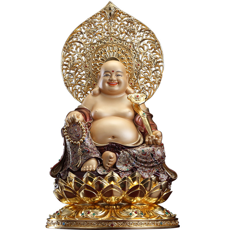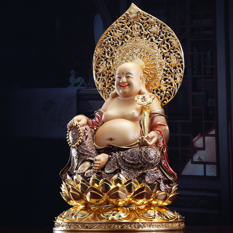 台湾纯铜弥勒佛菩萨大肚笑佛店铺招财摆件家用客厅供奉布袋和尚像