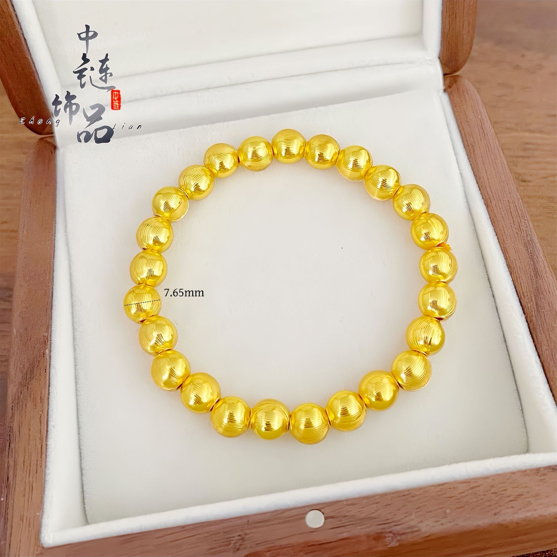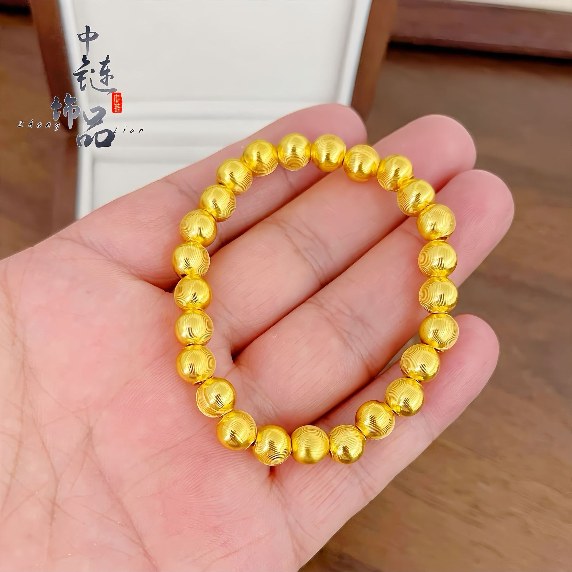 金店同款高保色古法沙金猫眼珠珠手链 复古金条纹珠珠手串diy配件