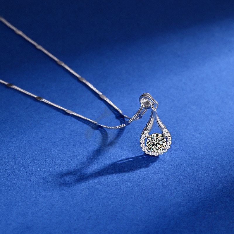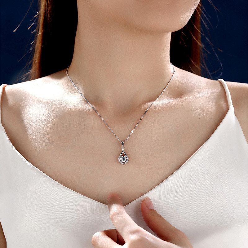 S925纯银项链女天使之泪水滴莫桑石百搭时尚欧美风气质款锁骨链