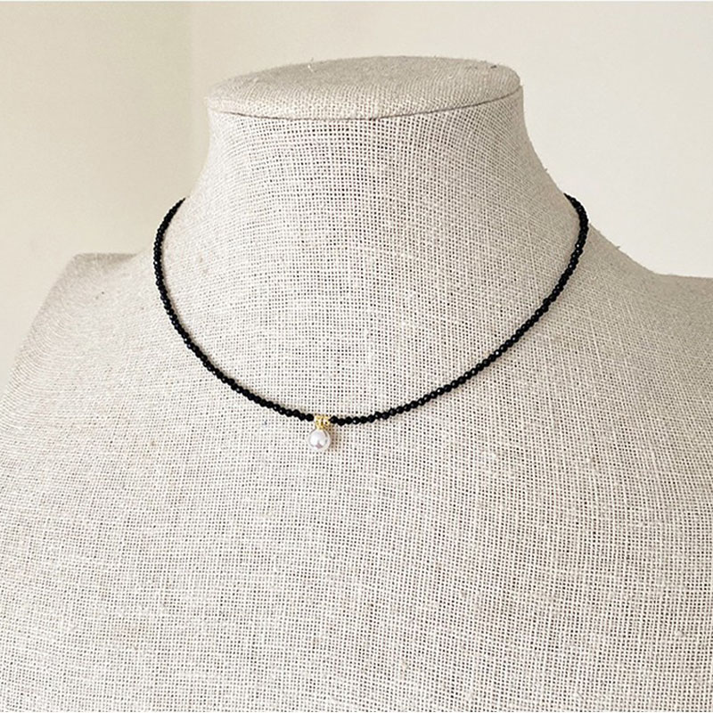 黑色水晶珍珠项链2023年新款爆款气质锁骨链女高级感轻奢小众颈链