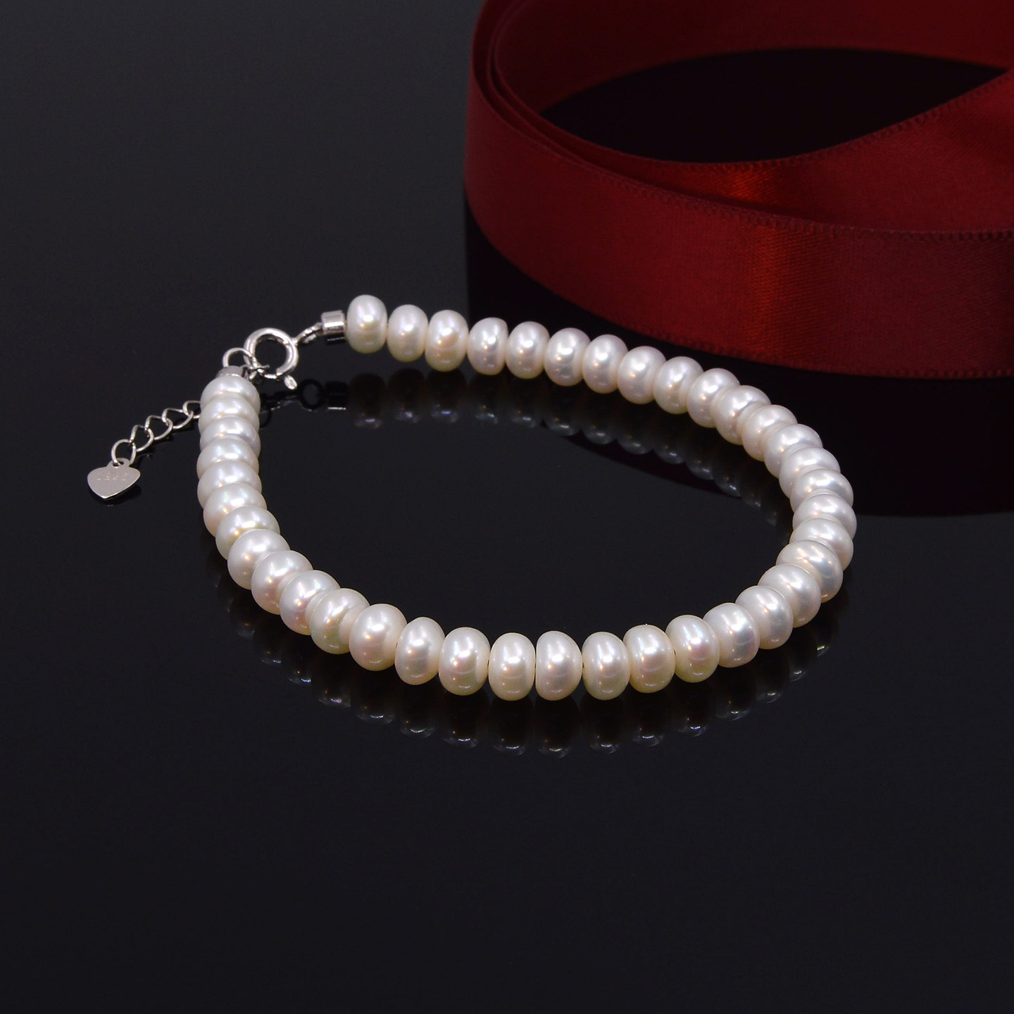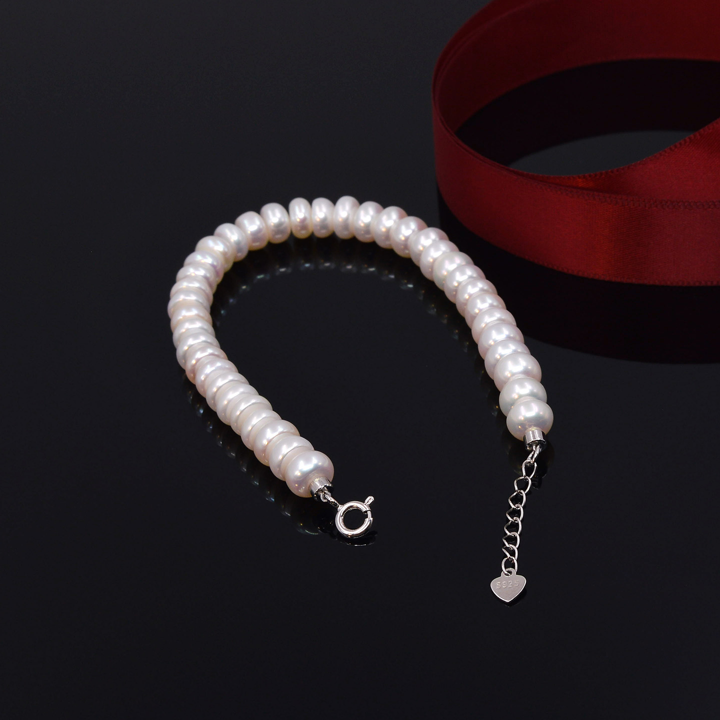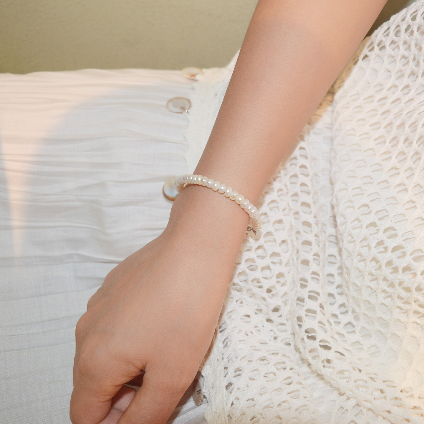 白色天然淡水珍珠手链女强光扁圆s925纯银简约百搭扁珠手串正品