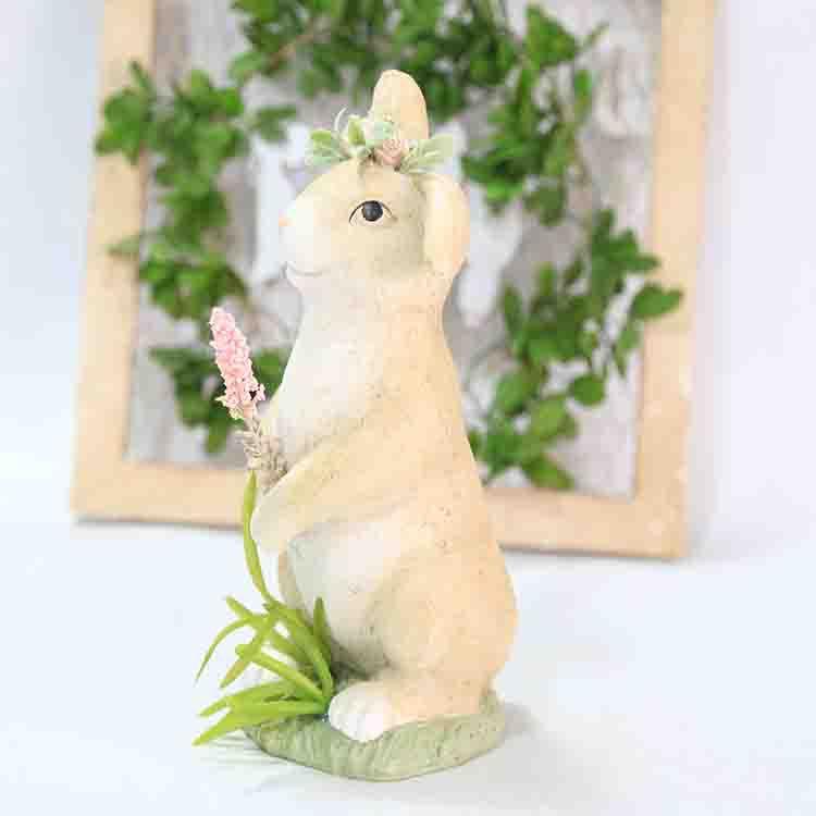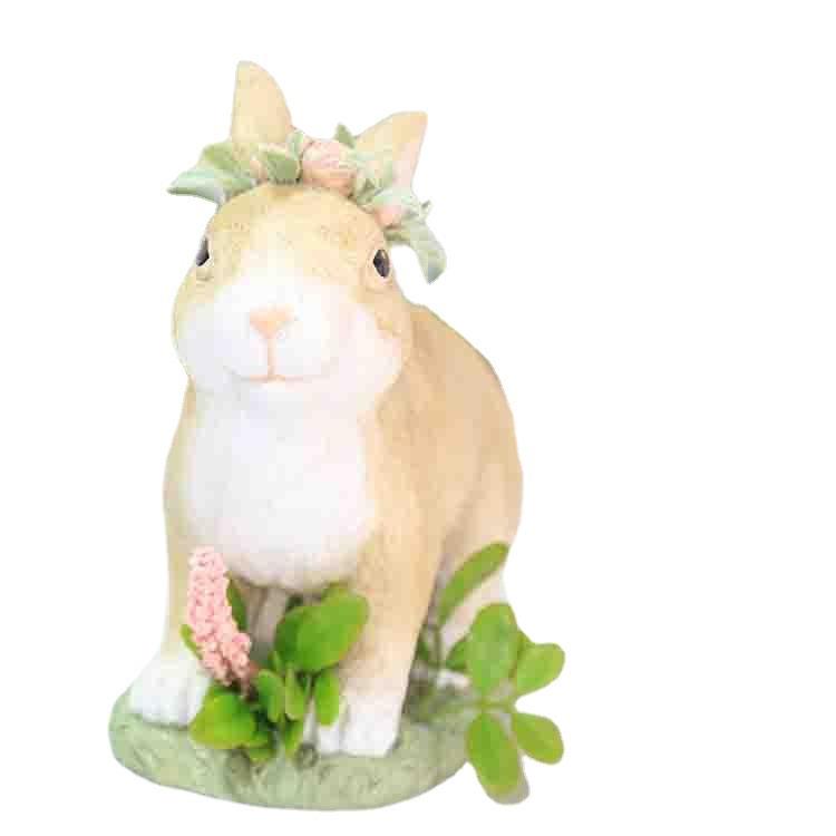 欧式别墅花园景观户外庭院橱窗装饰树脂灰色仿纸浆兔子草地摆件