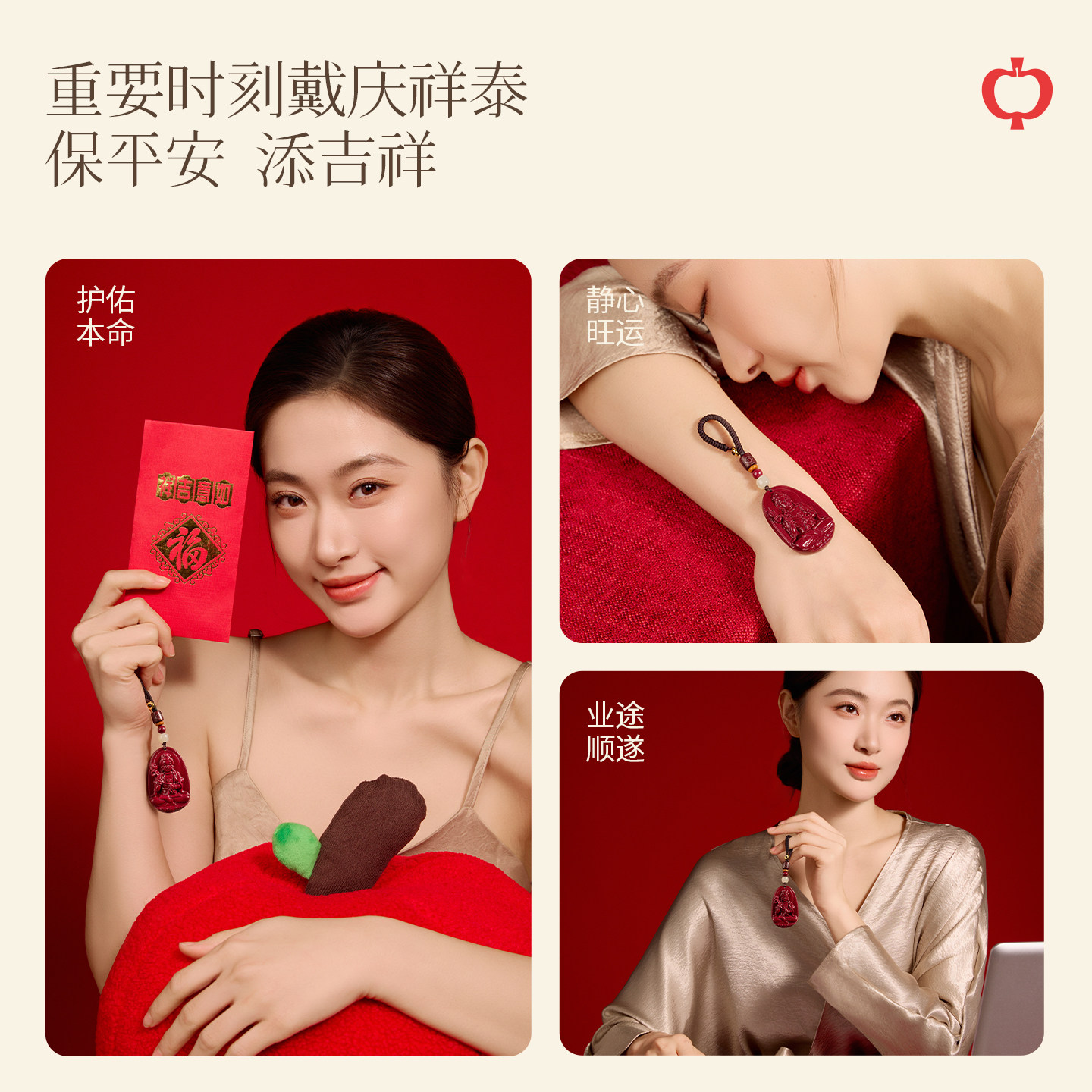 庆祥泰原矿朱砂钥匙扣男女正品官方旗舰店2026马年本命佛汽车挂件