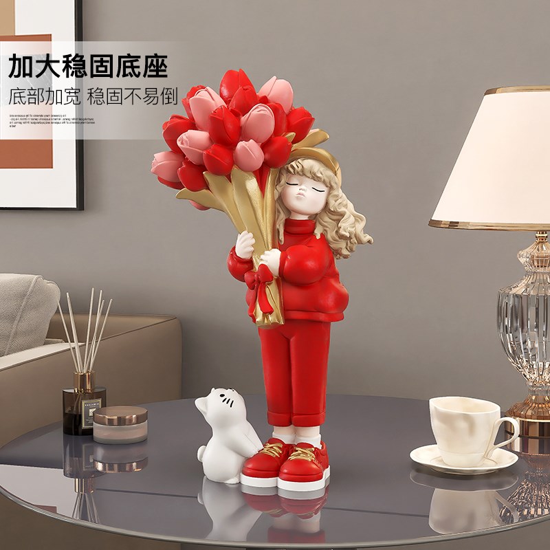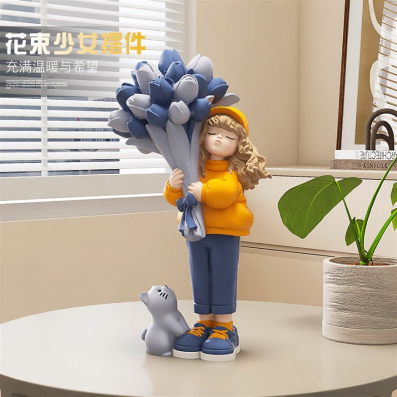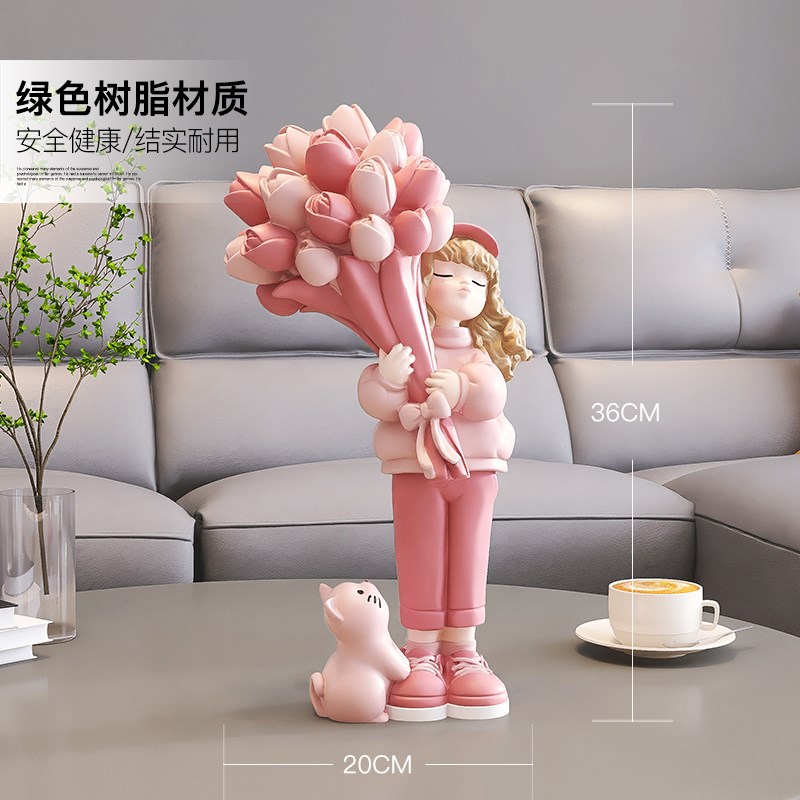 捧花女孩桌面摆件客厅电视柜酒柜玄关家居装饰品女生闺.蜜生日礼