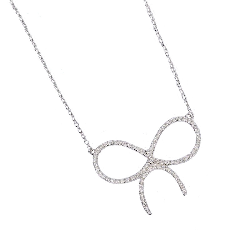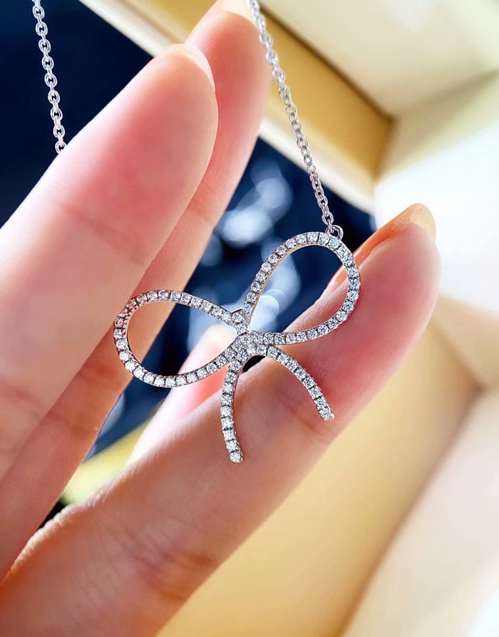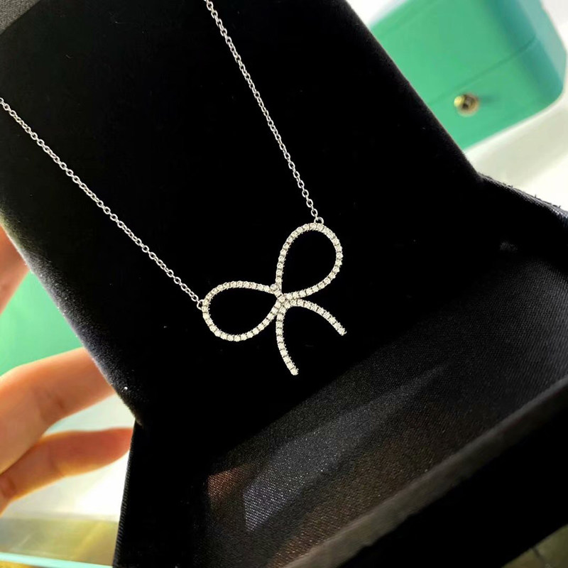 满钻微笑蝴蝶结项链锁骨链女白金网红高级感小众轻奢时尚气质银饰