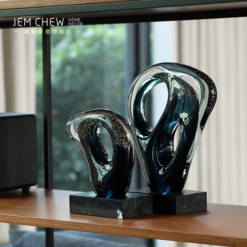意式轻奢镂空大理石底座水晶电视柜办公桌酒柜装饰设计师高端摆件