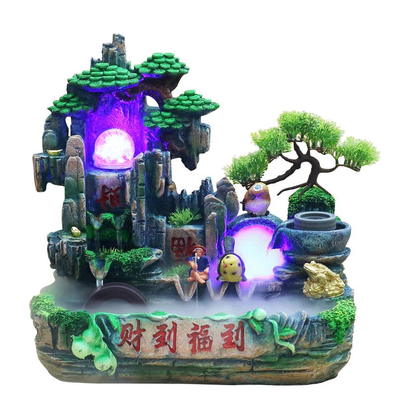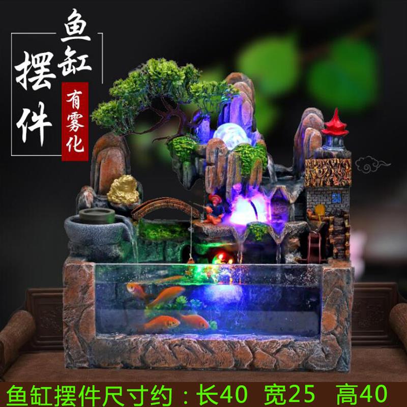 开设业送礼招财摆件风水轮摆流水喷泉池鱼9118鱼缸假山水景客厅前