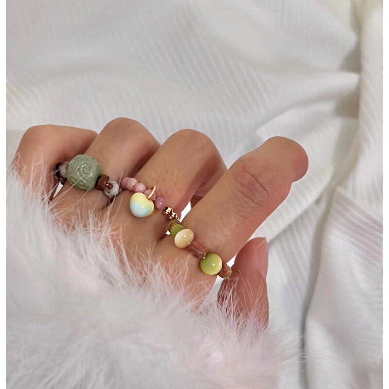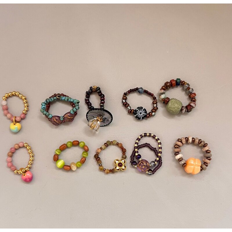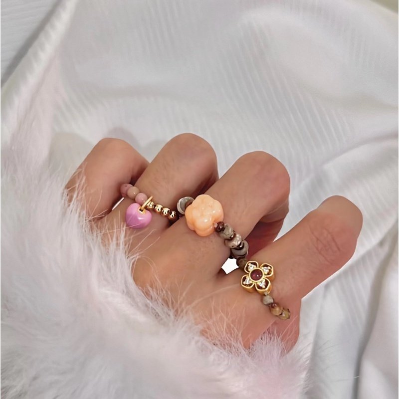 限量大人感 古董琉璃金棕花瓣戒指设计搭配戒弹力戒