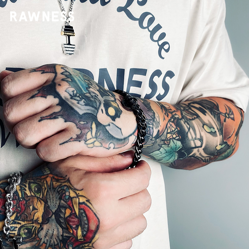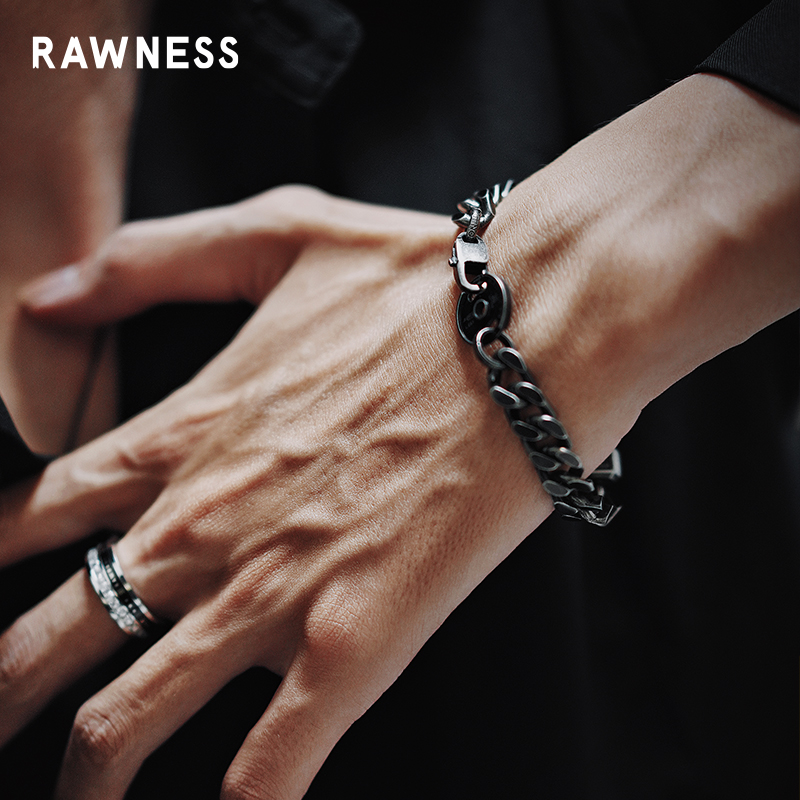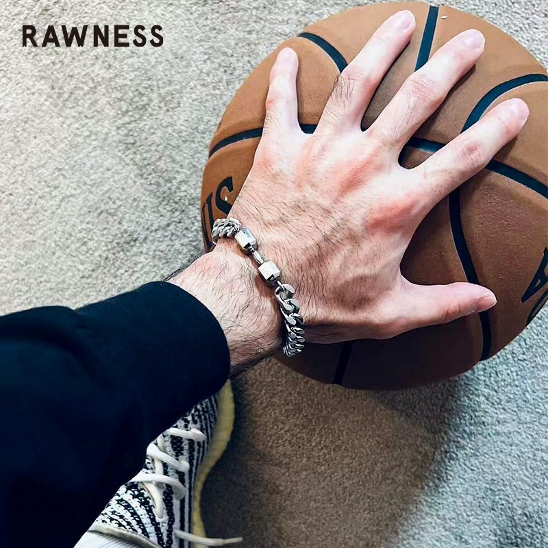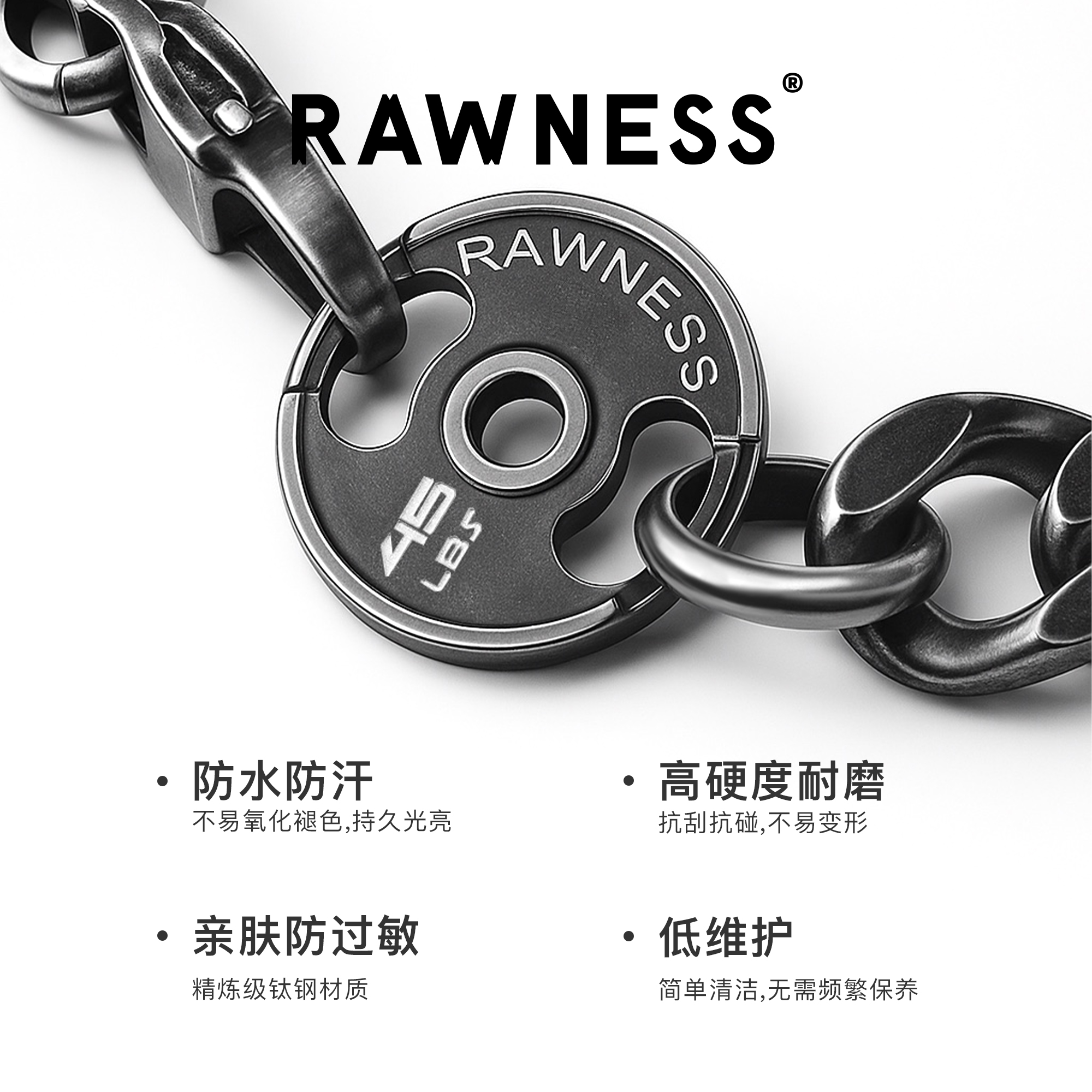 RAWNESS 哑铃杠铃片手链男小众复古钛钢简约男生古巴手环送男友