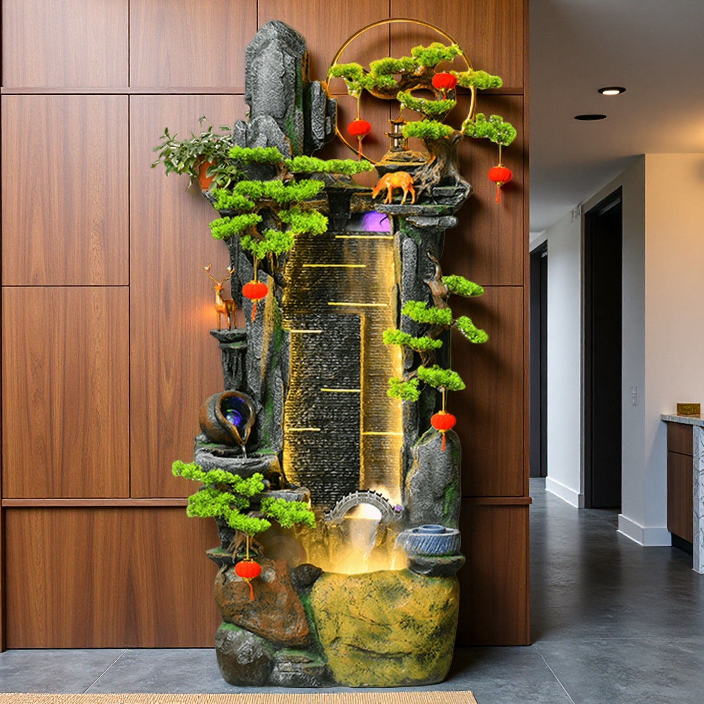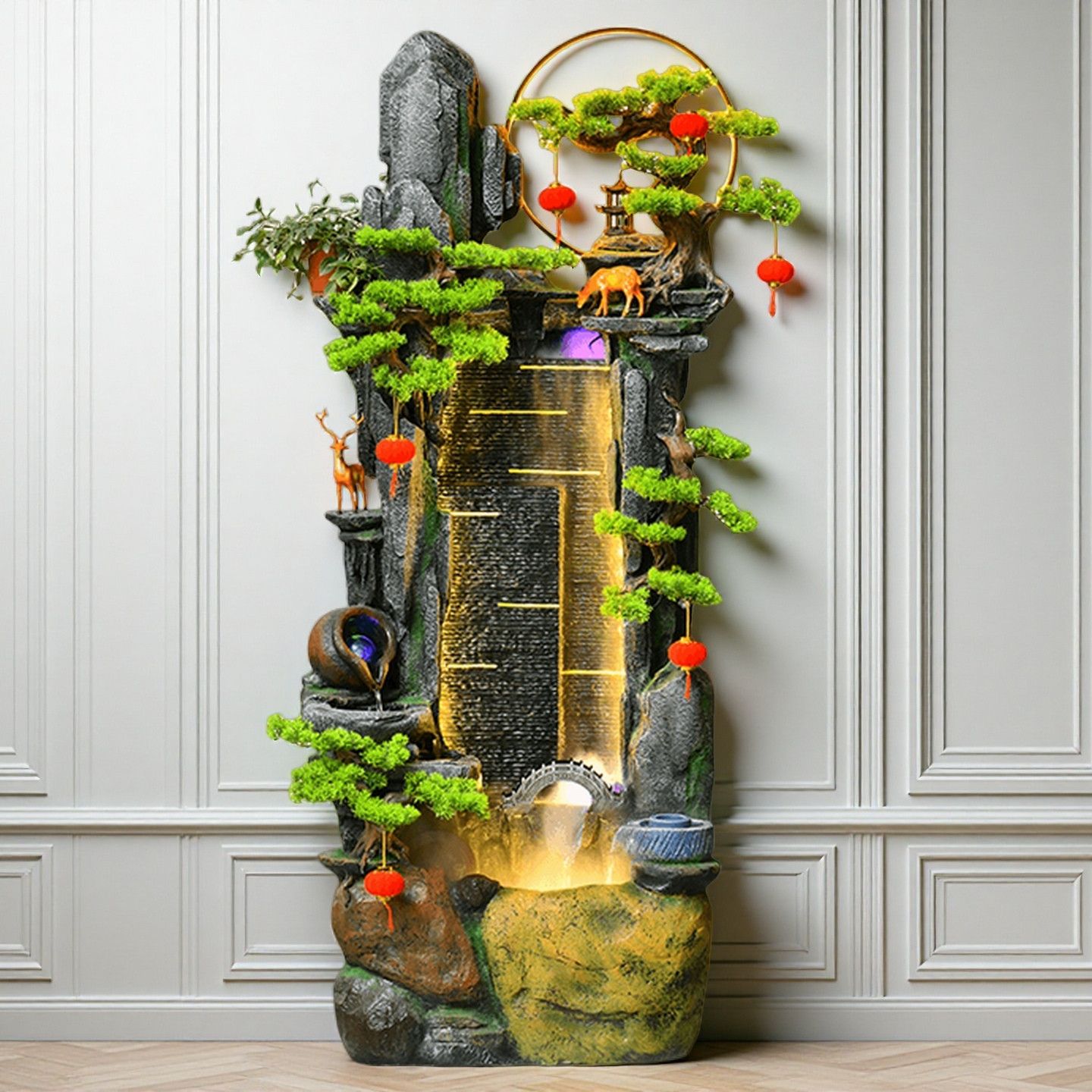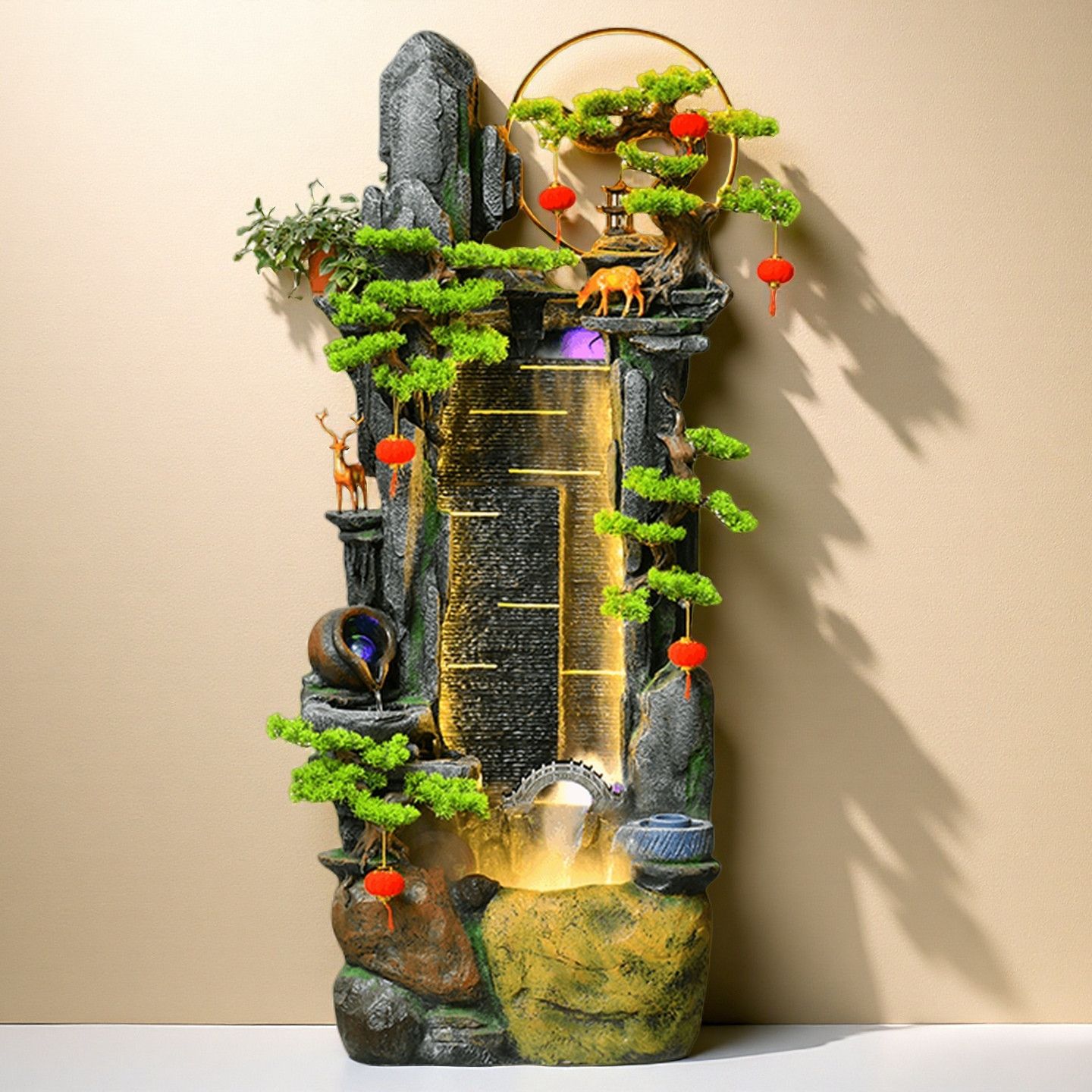 聚宝盆招财摆件乔迁开业送礼树脂落地摆件办公室假山流水招财摆件