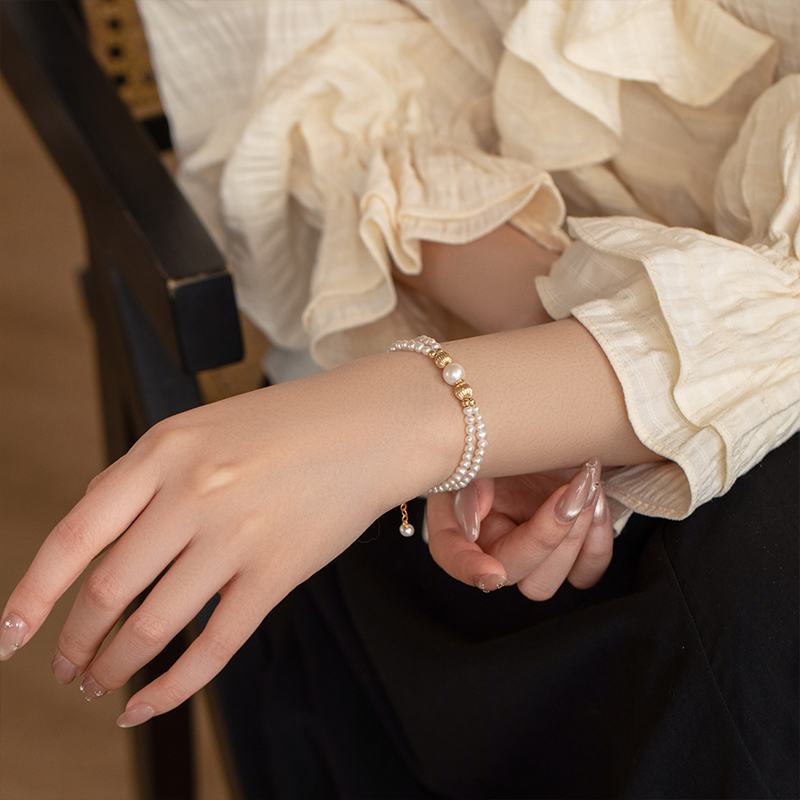 AOILDLLI双层法式复古珍珠手链女生轻奢天然淡水宫廷闺蜜送礼手串