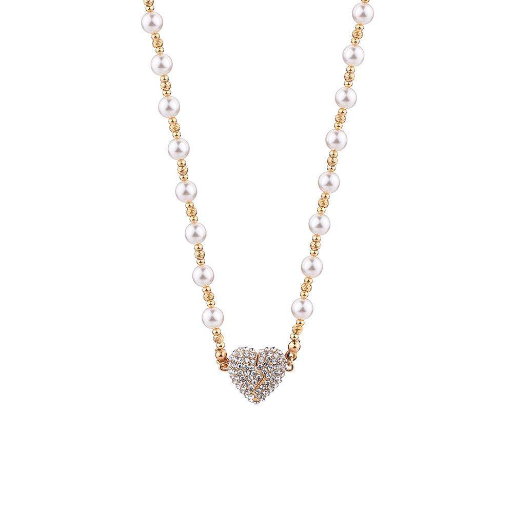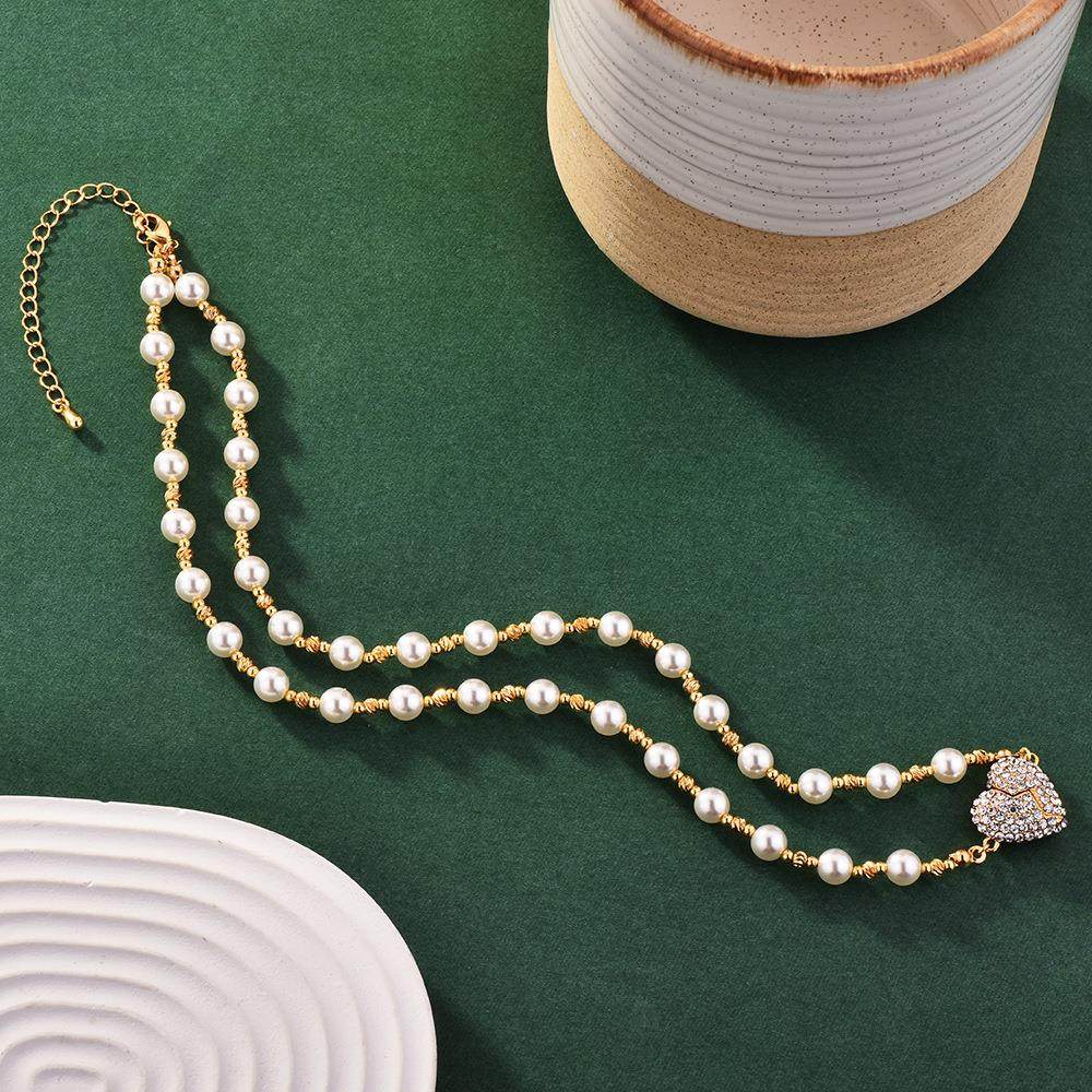 高级感镶钻爱心磁吸心形吊坠珍珠项链轻奢小众设计百搭气质锁骨链